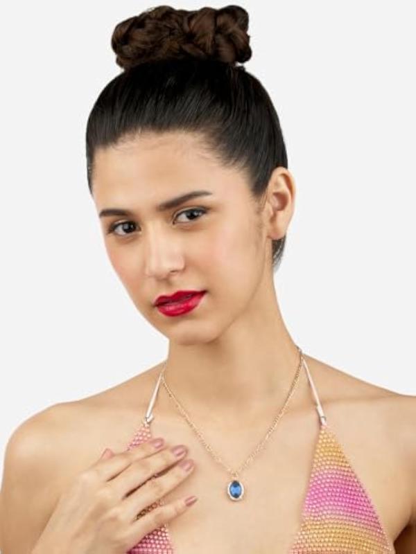 Elevate your style with this classy pendant and chain featuring stunning stone embellishments.