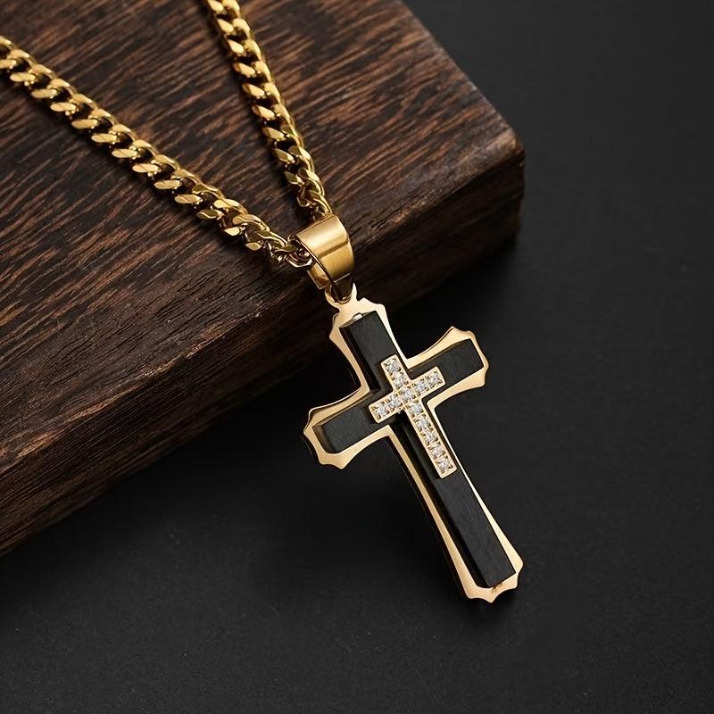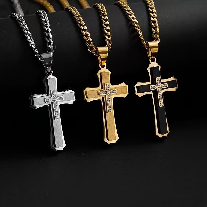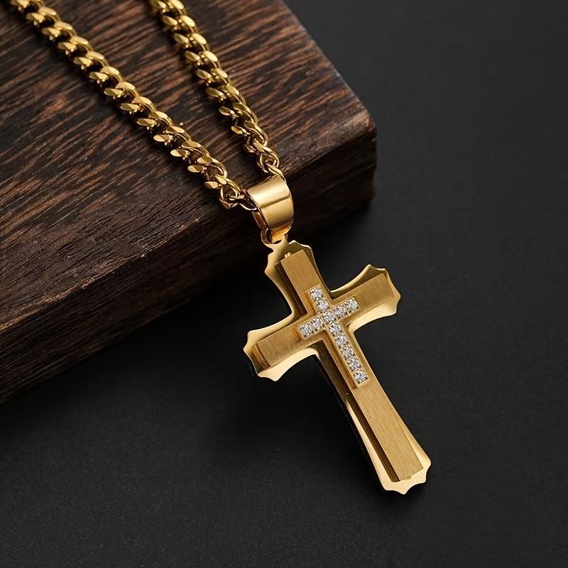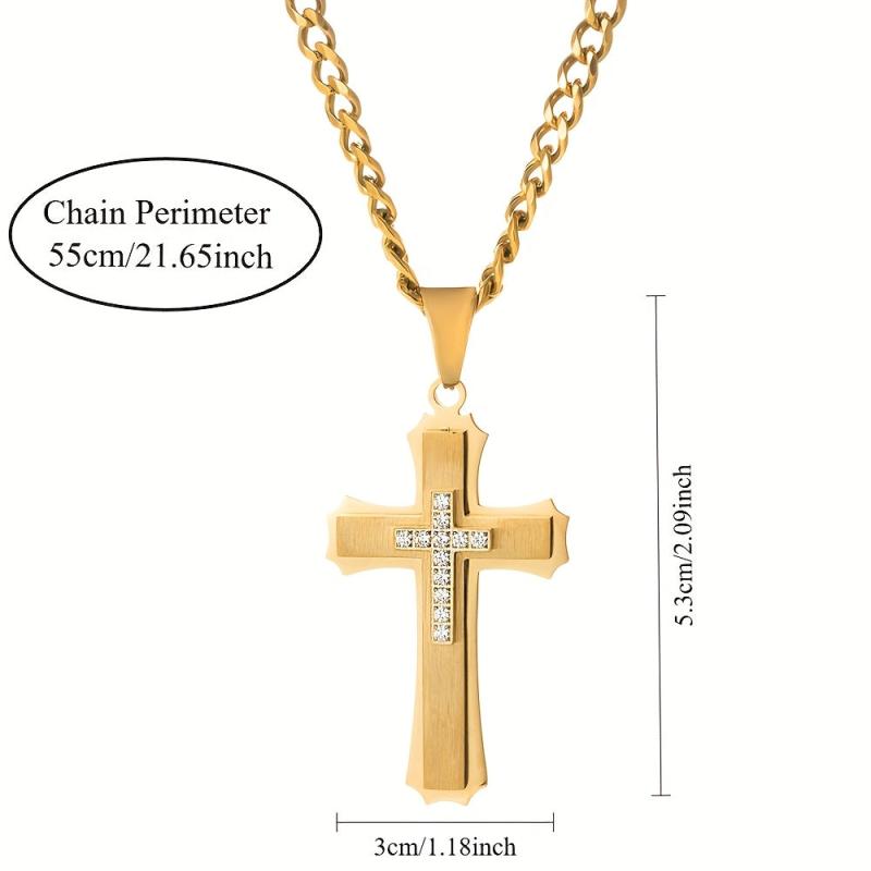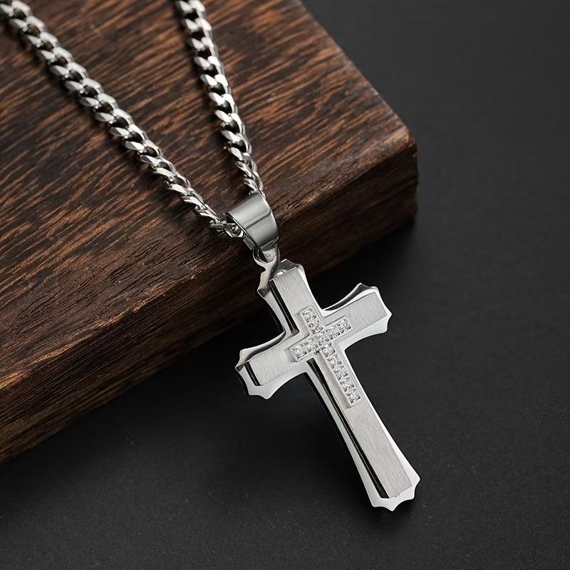 Stylish and meaningful cross pendant necklace made of plated 316L stainless steel with sparkling cubic synthetic zirconia, perfect for Christmas, birthdays, and special occasions.