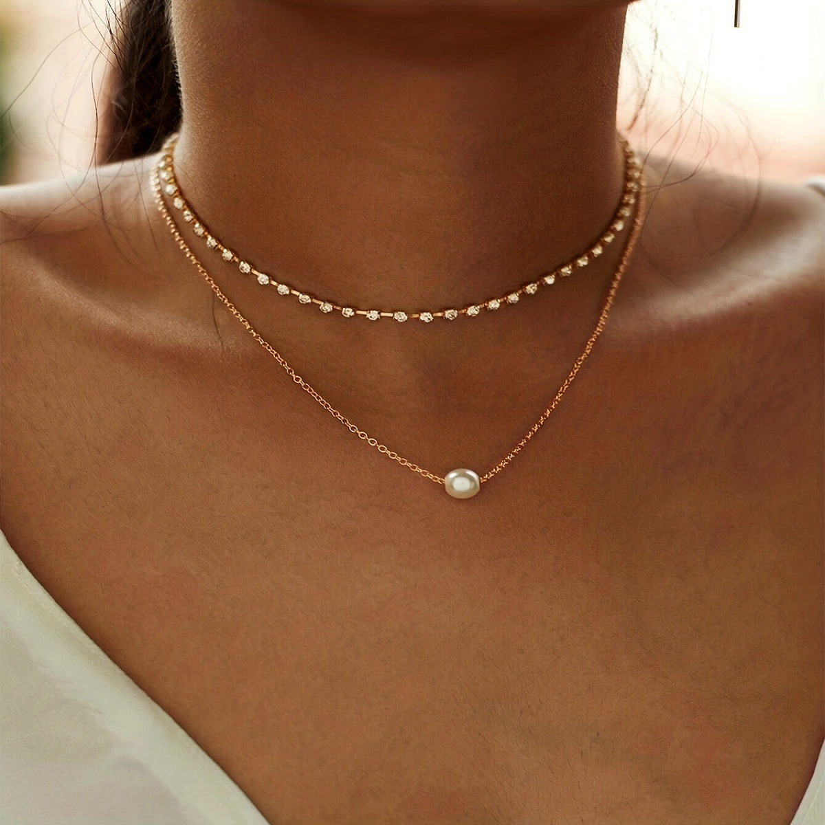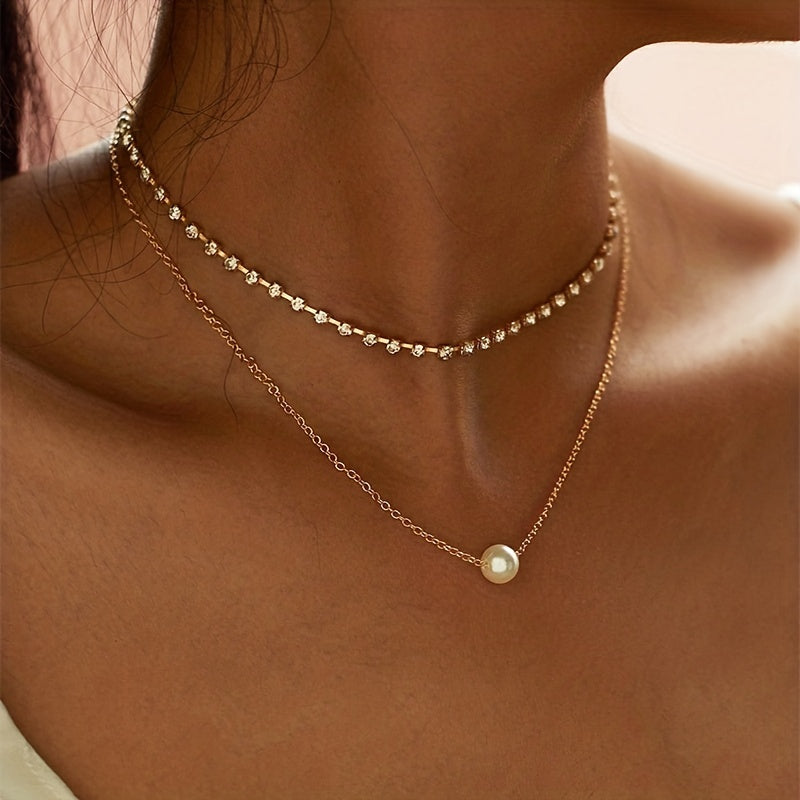 Elegant necklace set with crystal claw chain and pearl pendant, plated in 18K gold. Perfect gift for any occasion.