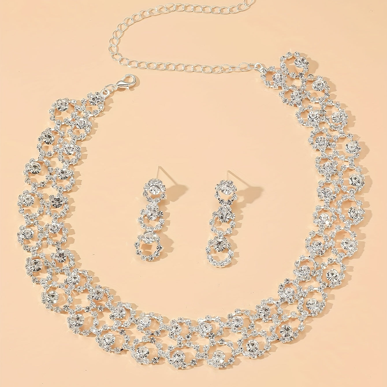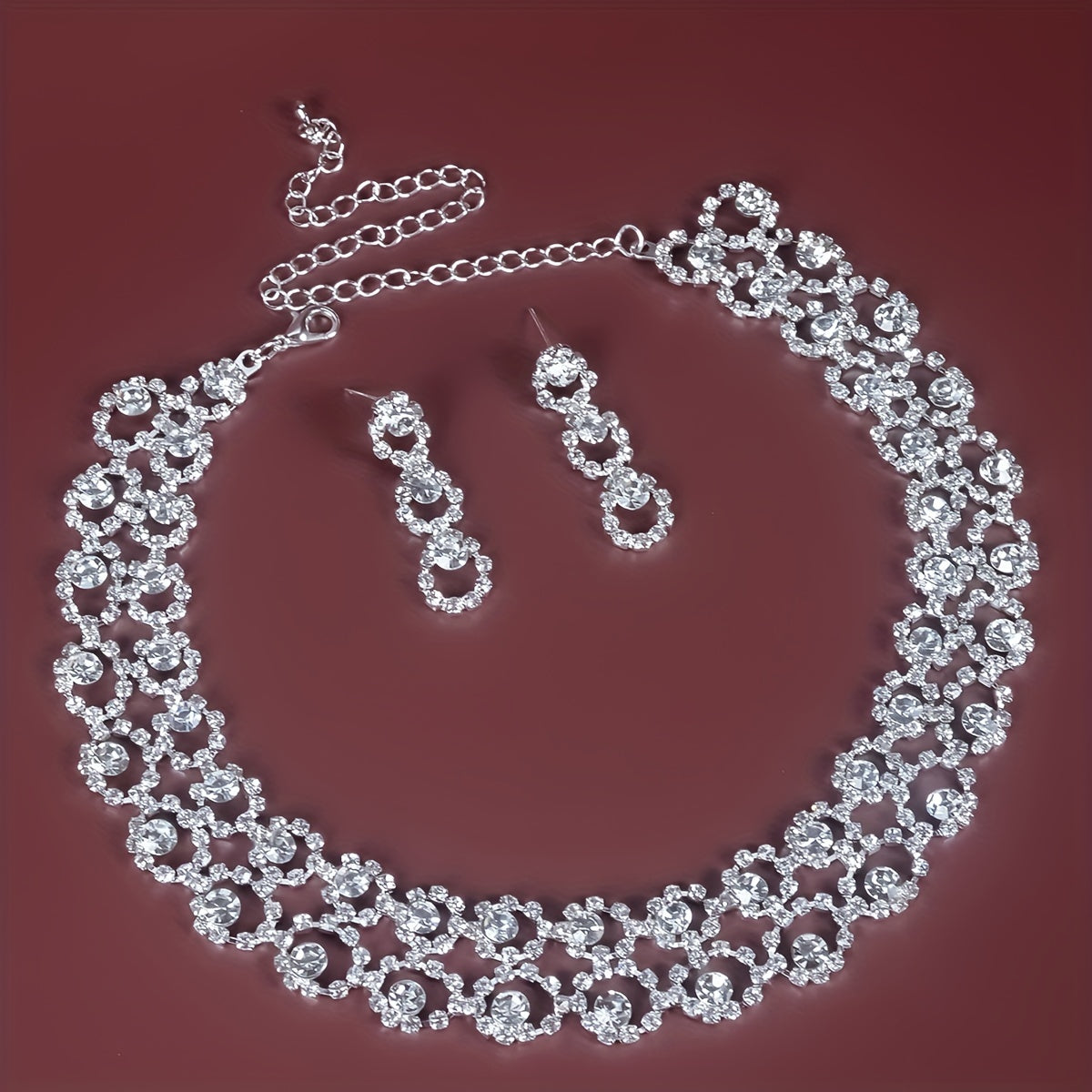 Add a touch of elegance to your outfit with this stunning jewelry set featuring hollow crystal design. Perfect for weddings, birthdays, and other special occasions.