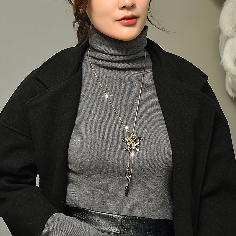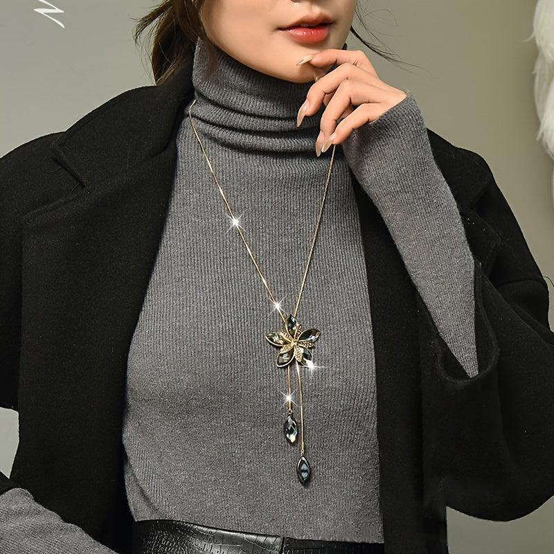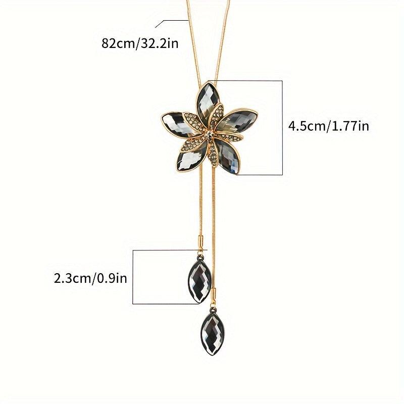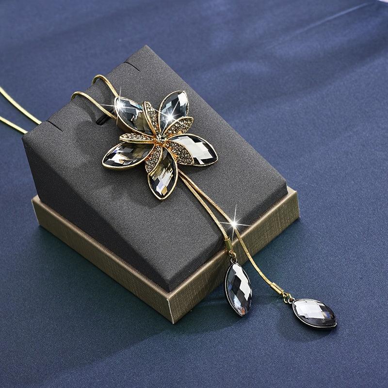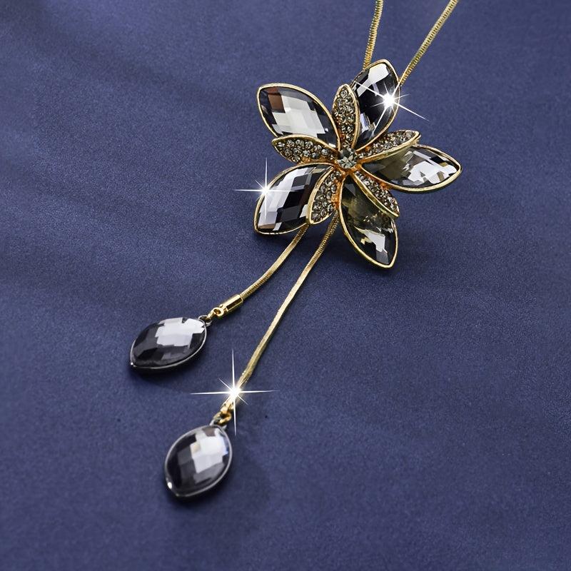 Elevate your style with this stunning artificial crystal embellished marquise flower necklace featuring a teardrop pendant on a golden chain. Perfect for both daily wear and formal occasions.