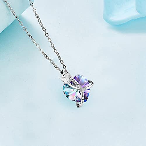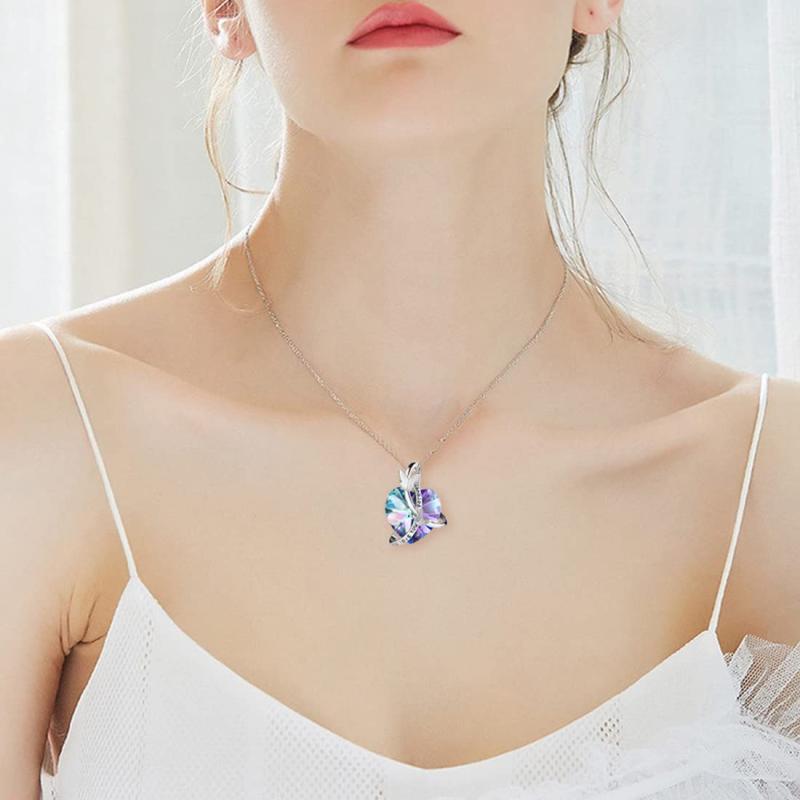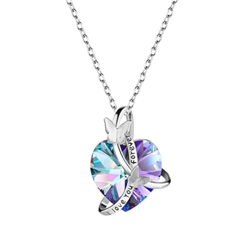 This elegant pendant features a silver-toned heart with a crystal butterfly, perfect for birthday or anniversary gifts for your wife. The purple crystal adds a touch of sophistication.