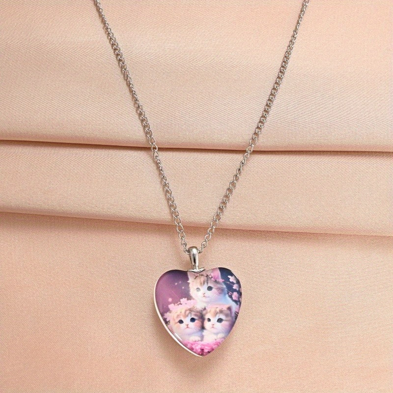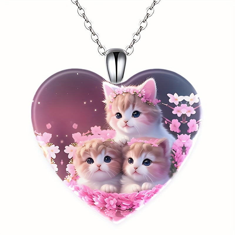 This stunning heart-shaped crystal pendant necklace is made of zinc alloy and features a cat design. It is perfect for men or women and makes a great gift for friends.