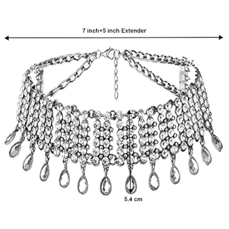 Make a shining statement with this crystal tassel choker necklace featuring rhinestones. Perfect gift for Valentine's Day.