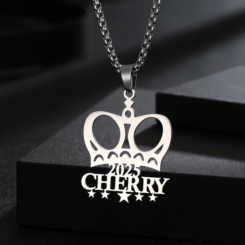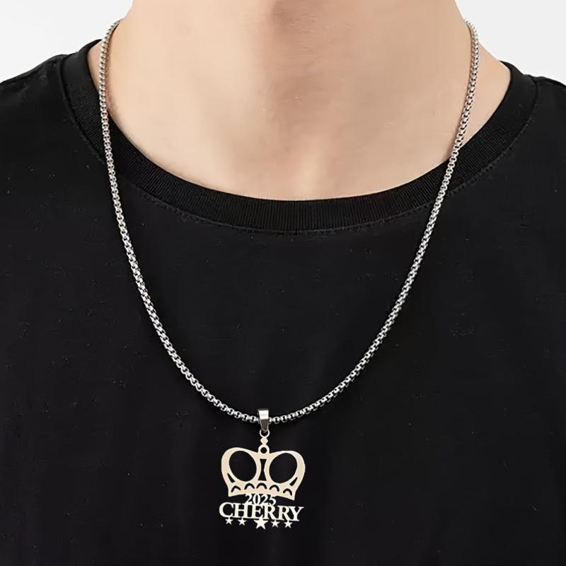 Express your unique style with this custom crown pendant necklace made of durable stainless steel. Personalize it with your name for a one-of-a-kind accessory.
