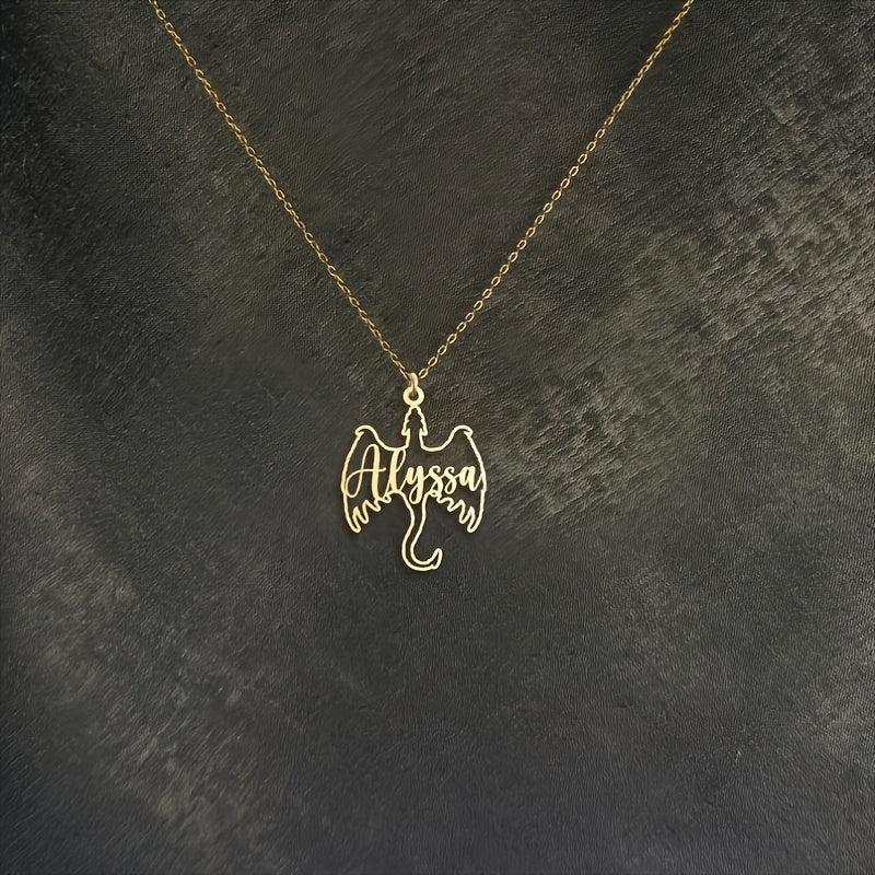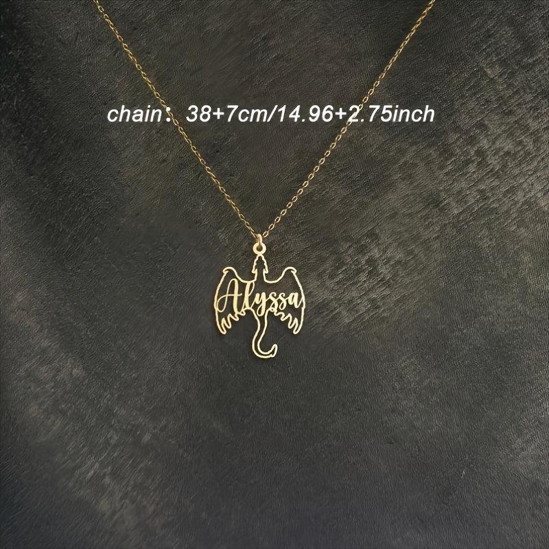 This unique dreamy stainless steel necklace features a custom dragon name pendant, making it a perfect punk style accessory. Ideal gift for dragon lovers all year round.