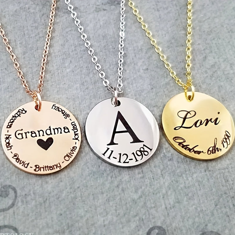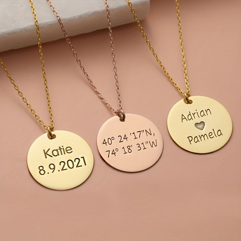 Personalized signature jewelry with custom engraving for a memorable gift. This round coin pendant is made of high-quality stainless steel, perfect for men and women.