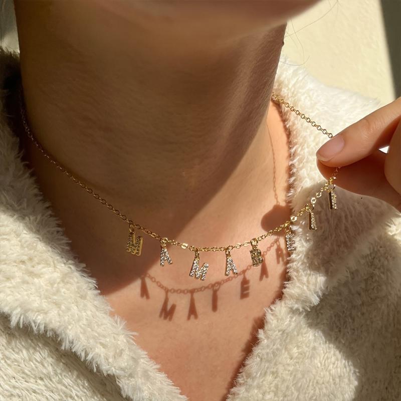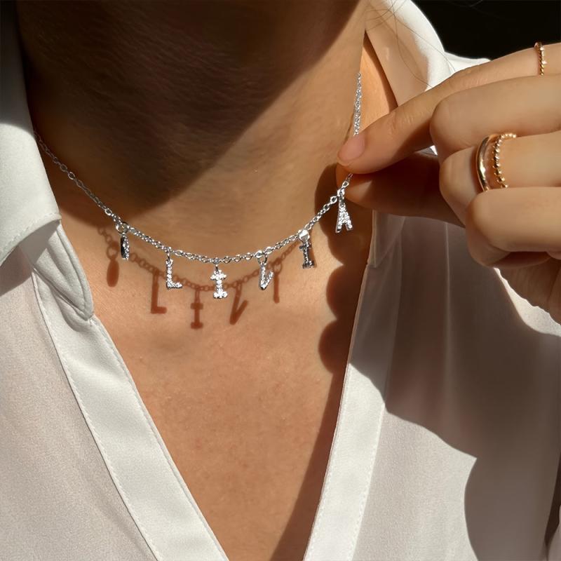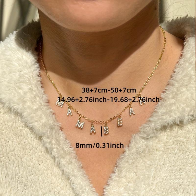 Personalize your style with this stainless steel necklace featuring synthetic zirconia letters. Perfect for casual bohemian attire or as a thoughtful gift.