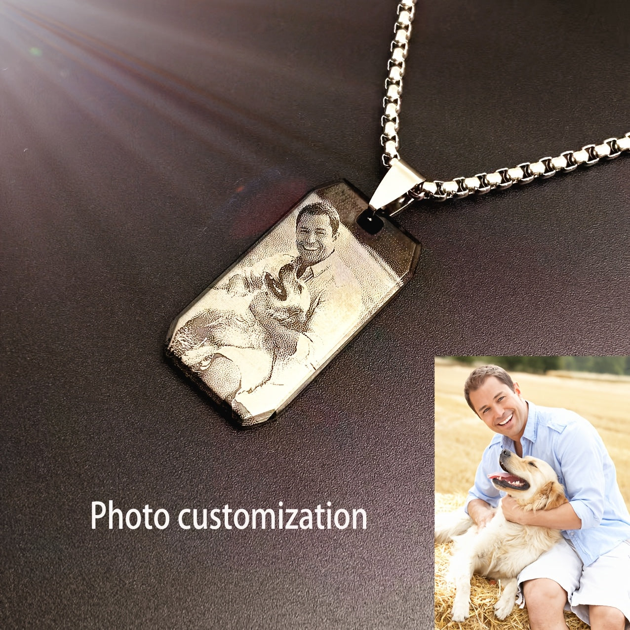 Keep your cherished memories forever with this personalized pet photo necklace. This stainless steel dog tag pendant can be engraved with a keepsake image of your pet.