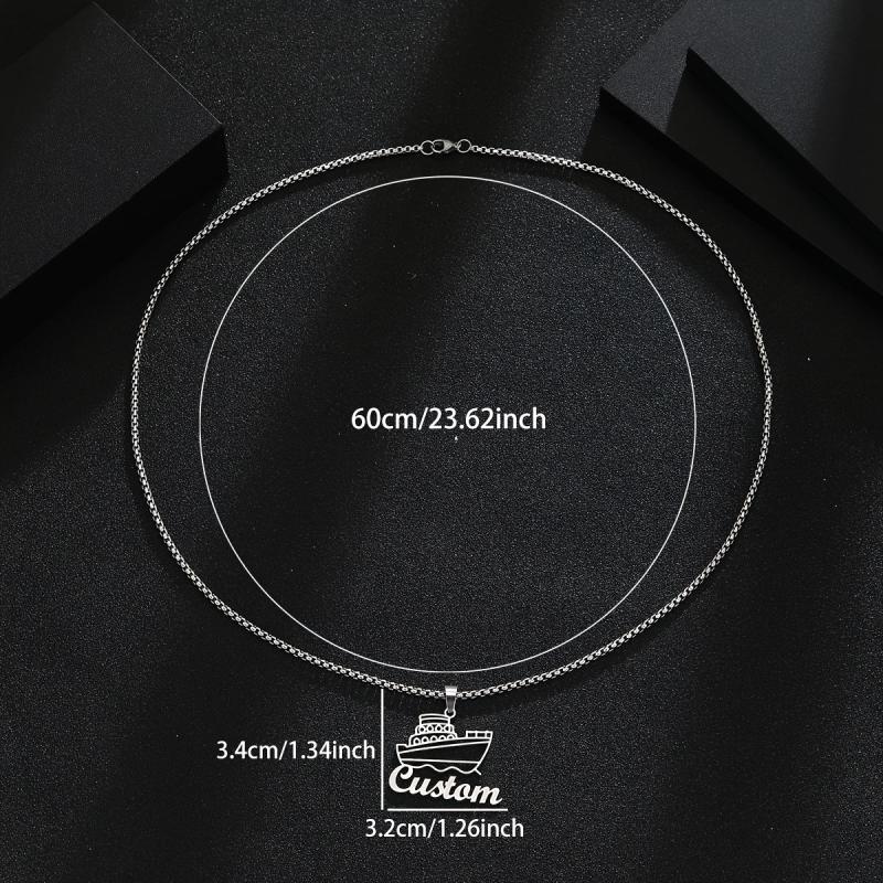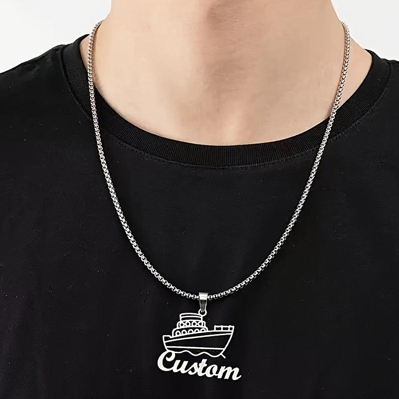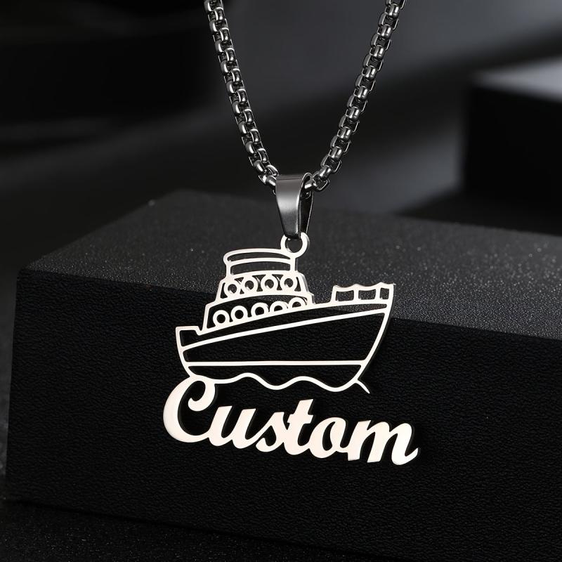 Unique and stylish stainless steel pendant necklace featuring an intricate steamship silhouette. Perfect for daily wear or as a thoughtful gift for a loved one.