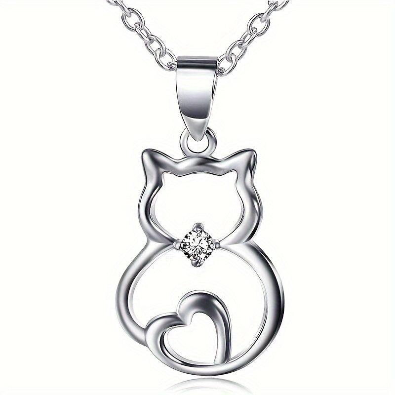 This adorable pendant necklace features a little cat design with zirconia inlay and a unique heart-shaped tail. Perfect for girls to wear at birthdays or any special occasion.