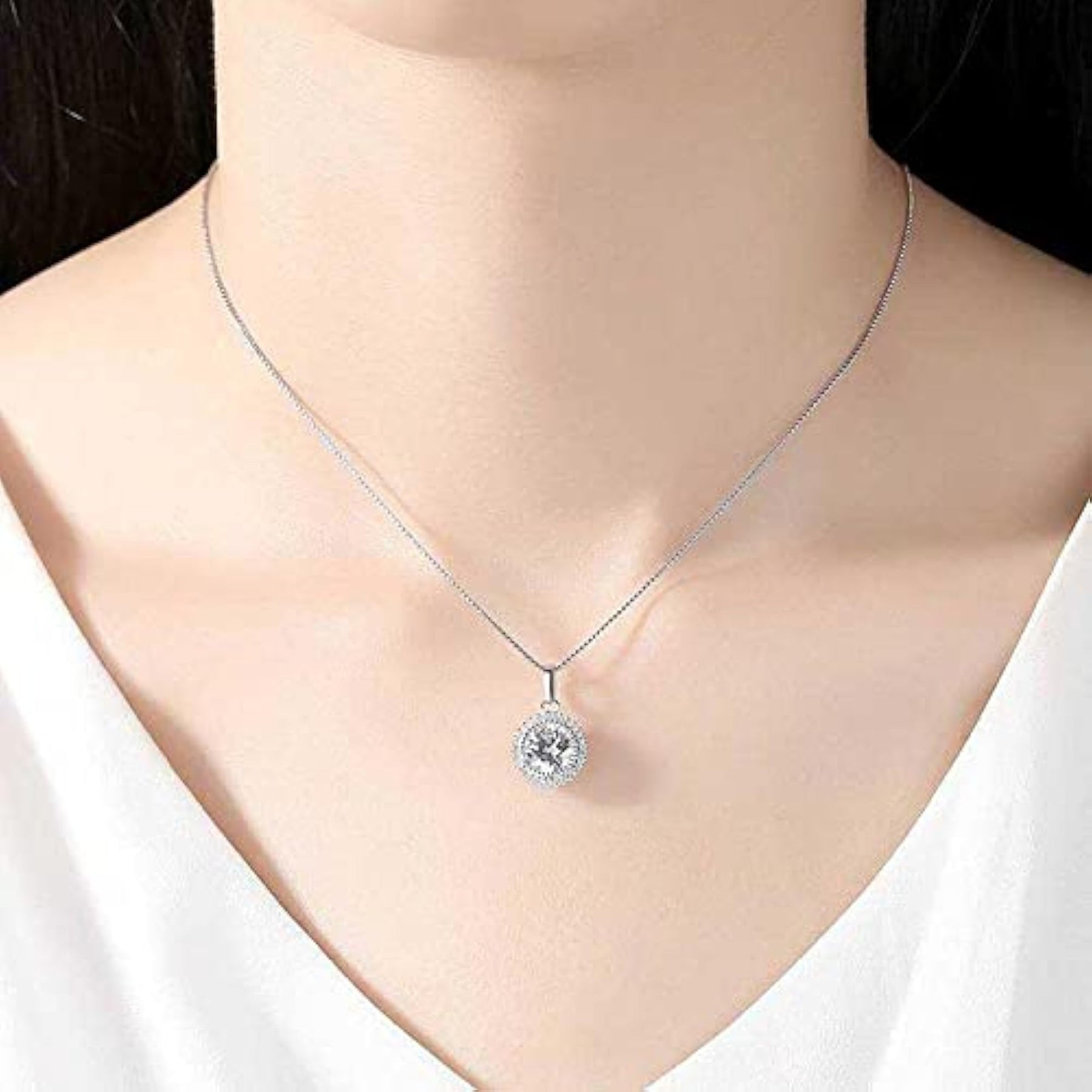 Add a touch of elegance to your outfit with this stunning Round Cubic Zirconia Pendant Necklace. The sparkling pendant is crafted with high-quality CZ stones that catch the light beautifully. This necklace is perfect for girls and women who love a bit of bling!