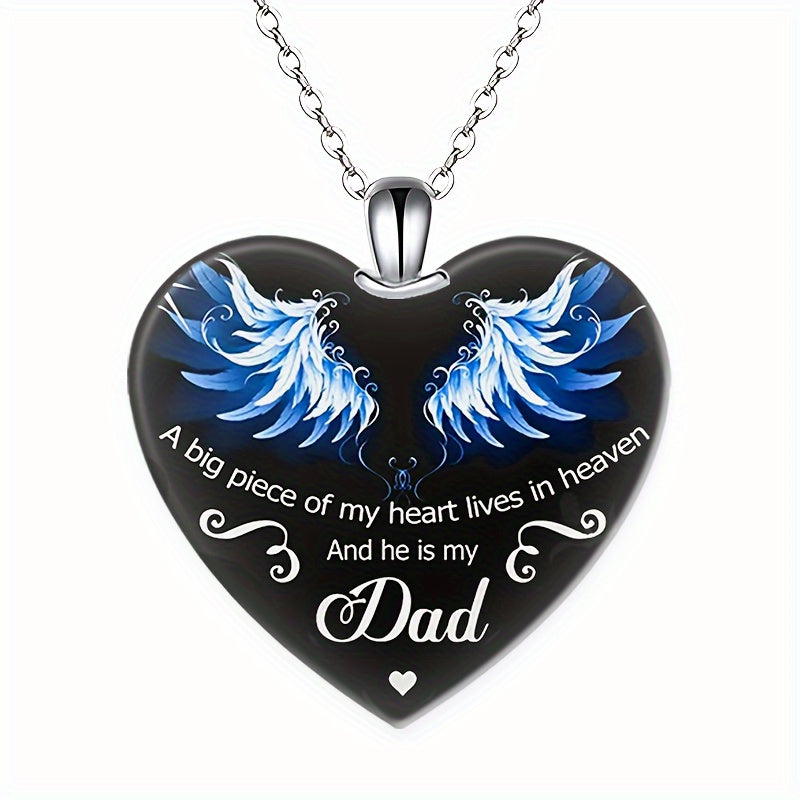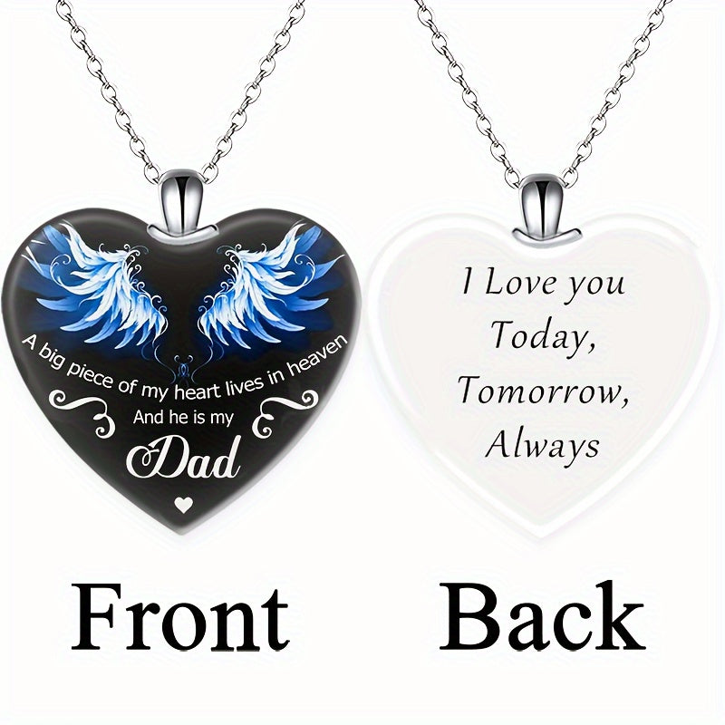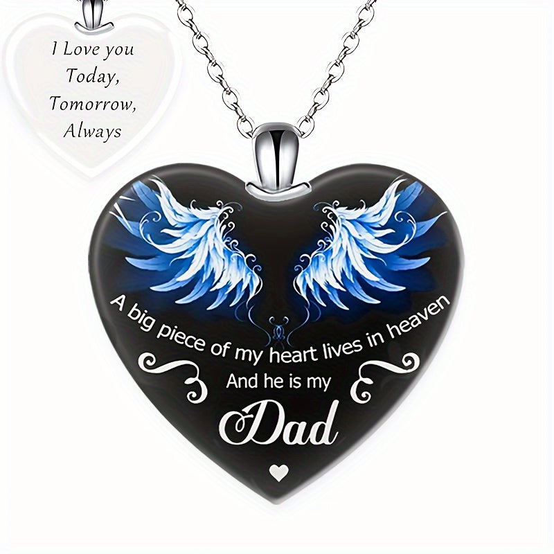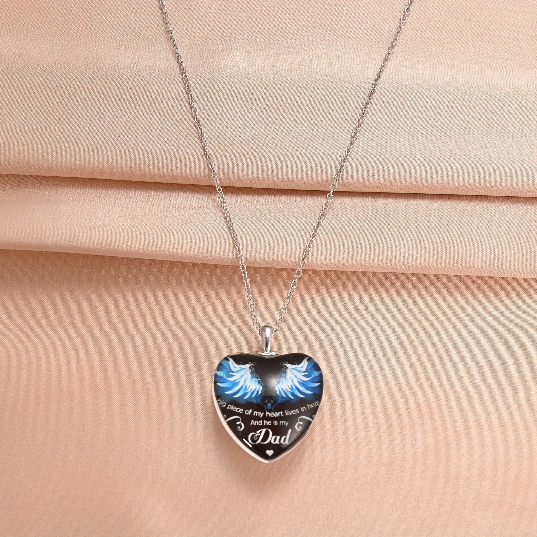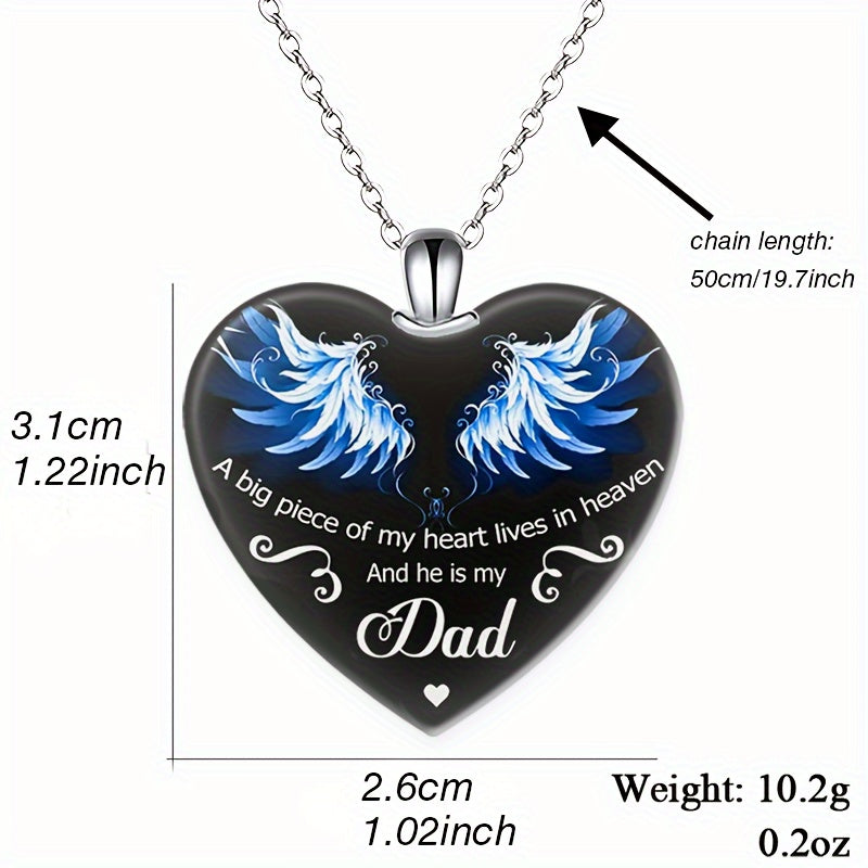 Show your dad your love with this beautiful pendant necklace featuring an angel wing print and heart crystal. A perfect father's jewelry gift!