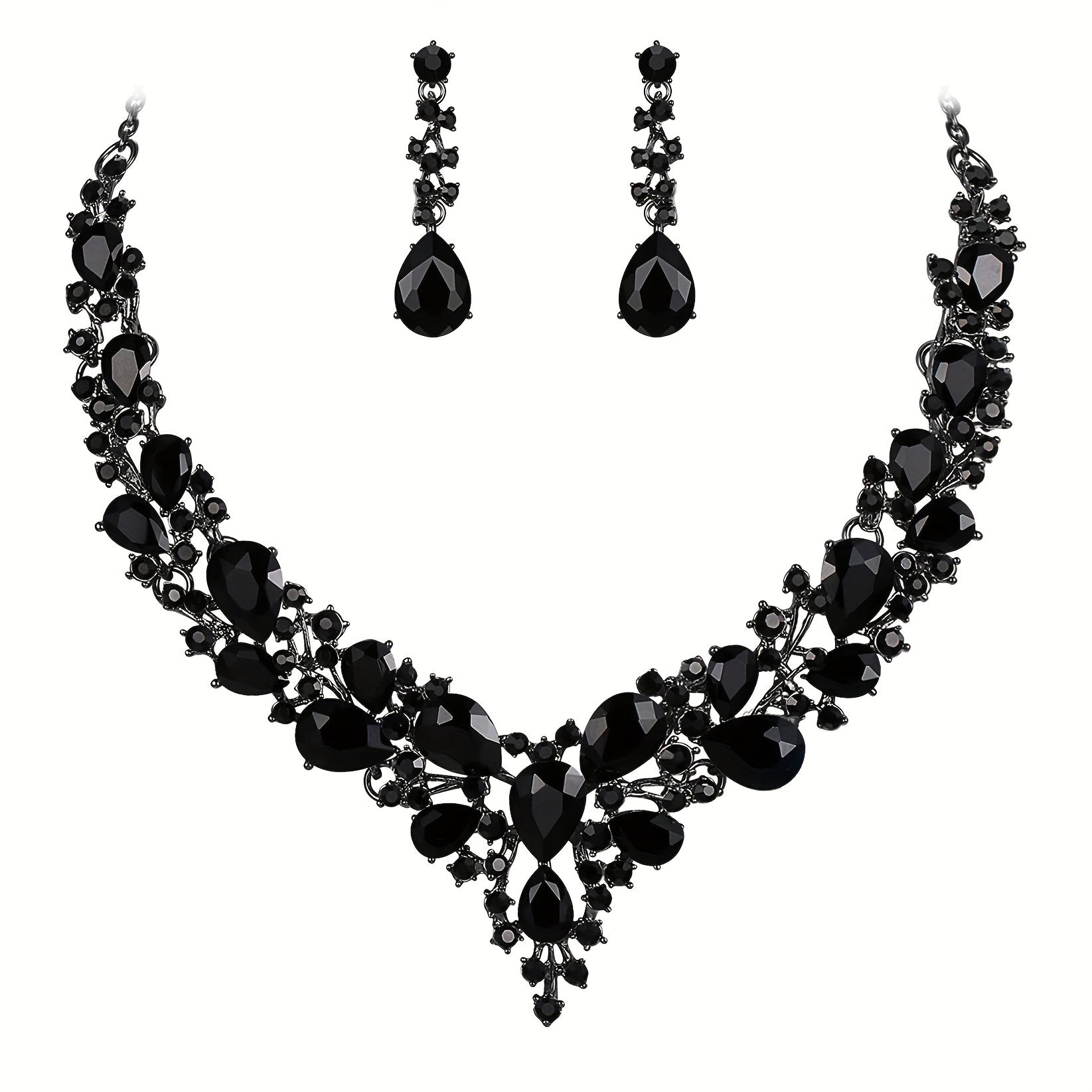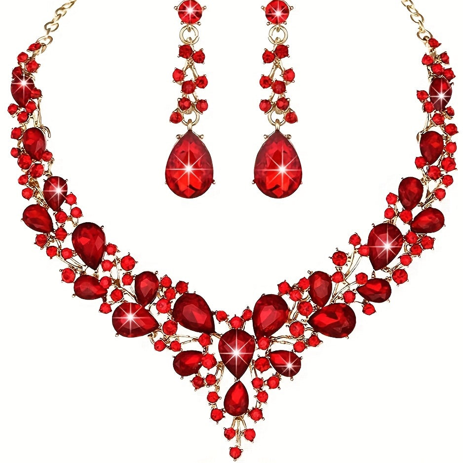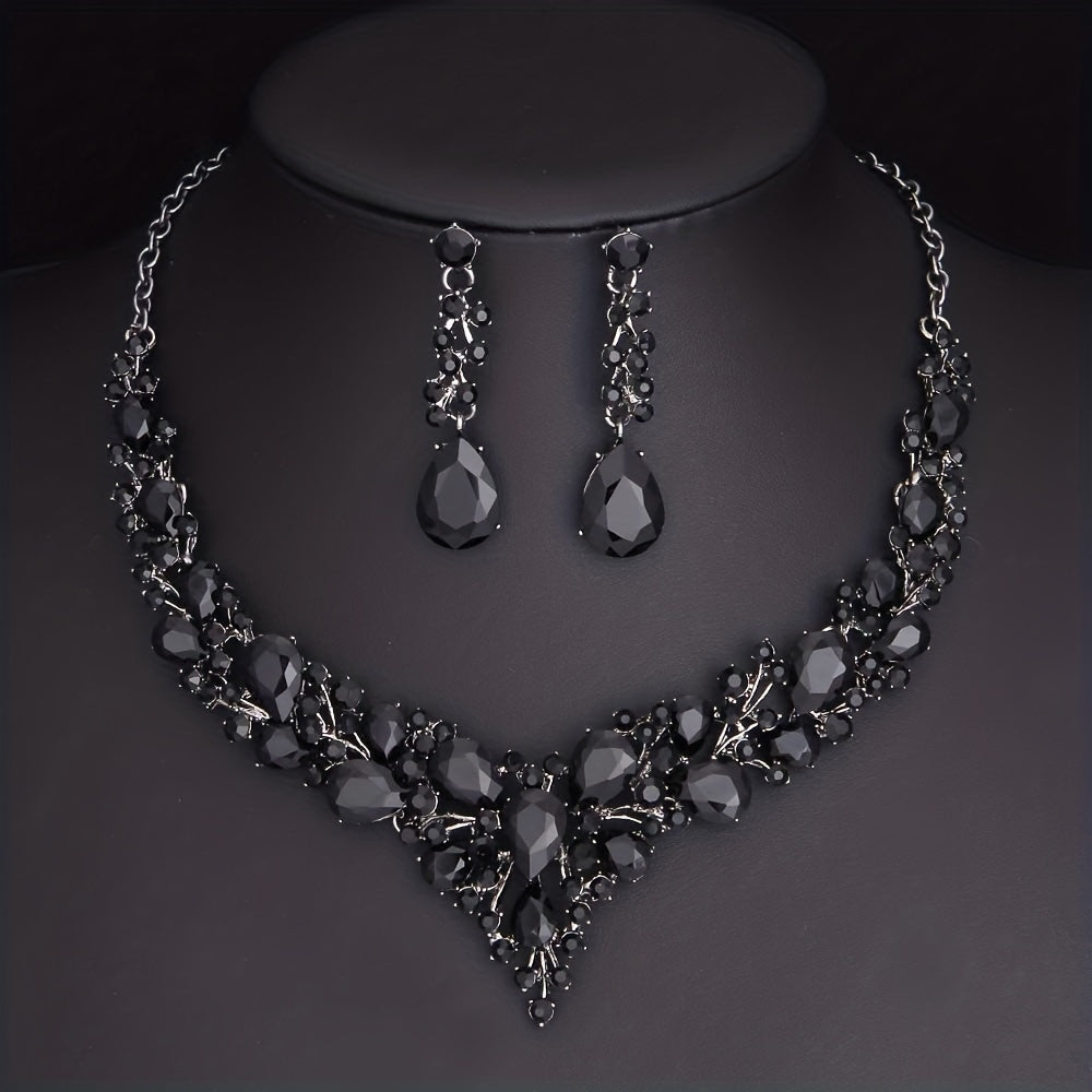 This elegant 3-piece set includes earrings and a necklace with rhinestone inlays. Perfect for evening parties and special occasions.