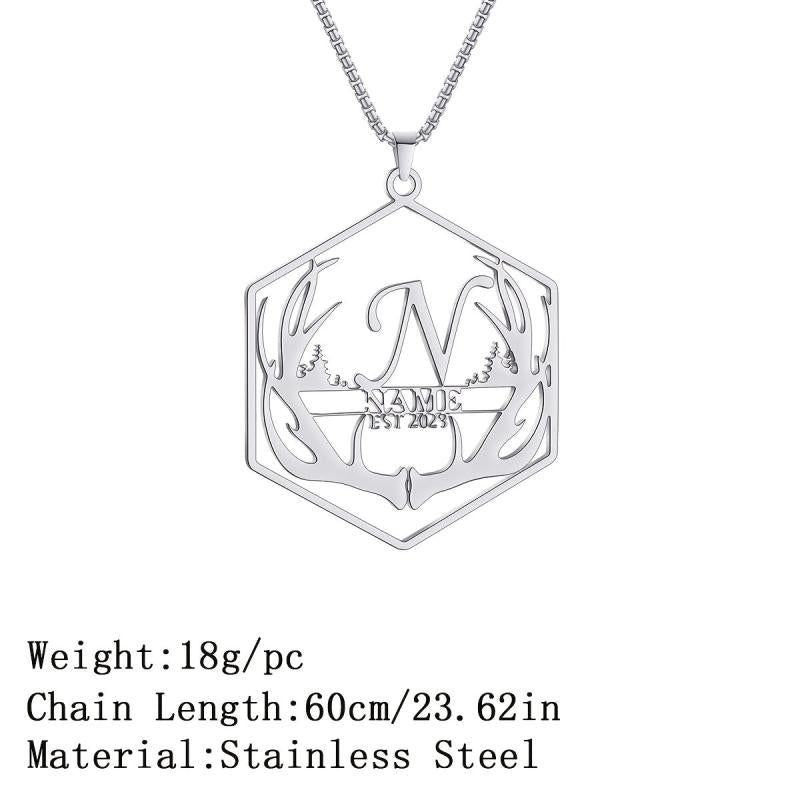 Bring a touch of nature-inspired style with this stainless steel pendant necklace featuring deer antlers in a unique hexagon design.