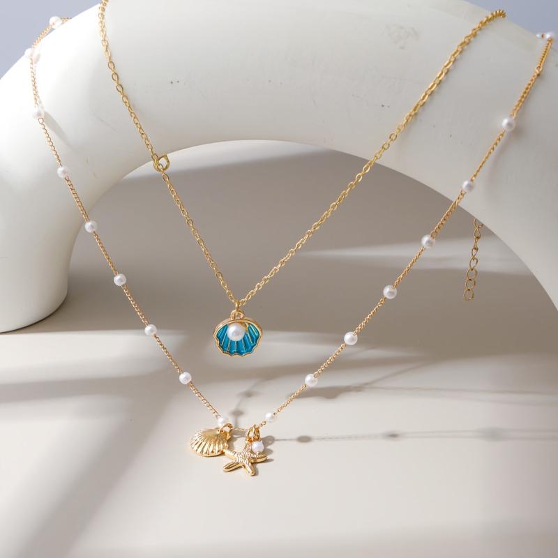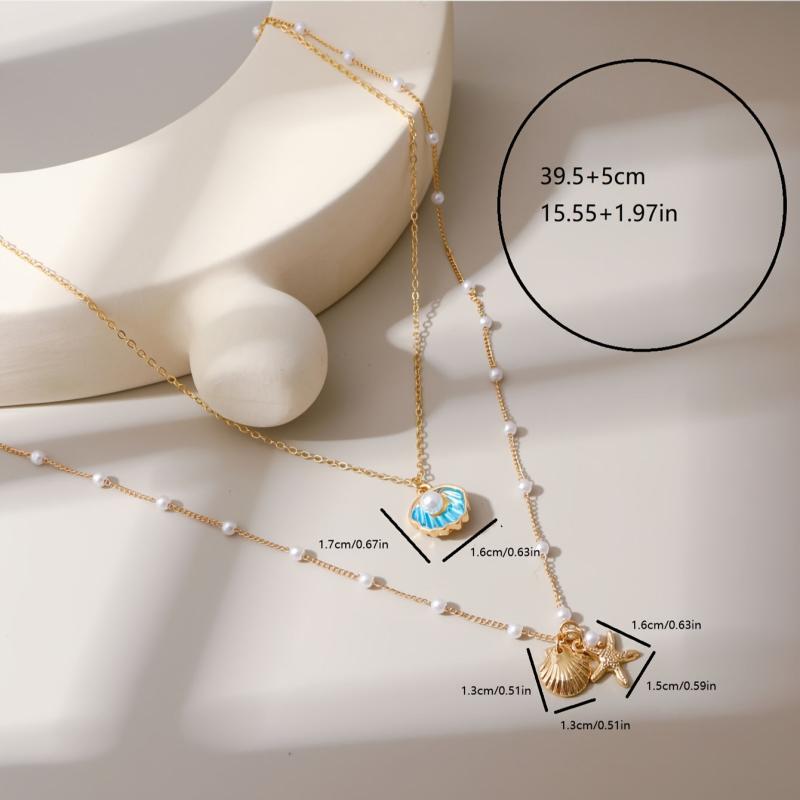 This fashionable necklace features a thin chain with double rows of delicate beads and an artificial drop pendant in the shape of a starfish. It's perfect for women looking for a stylish beach casual accessory for everyday wear.