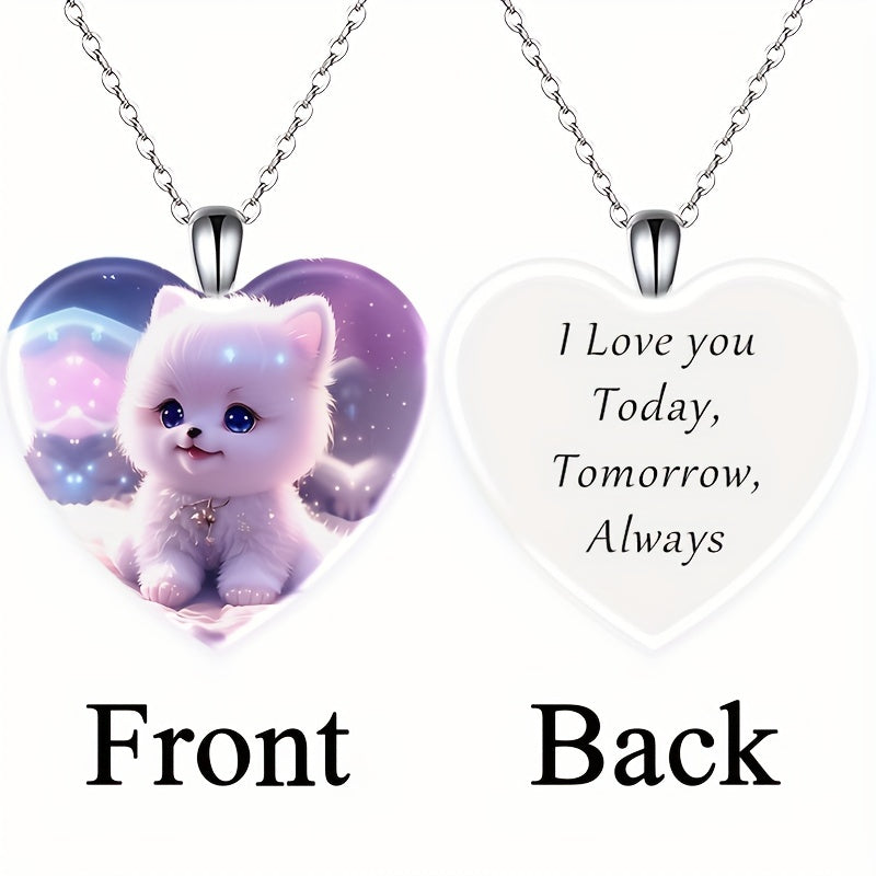 This adorable necklace features a heart-shaped crystal pendant with a cute dog design, perfect for dog lovers. Show your love for your pet with this lovely piece of jewelry.