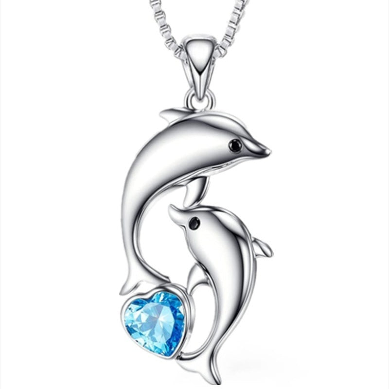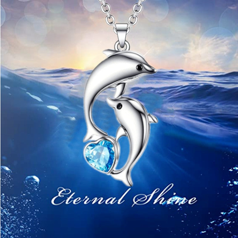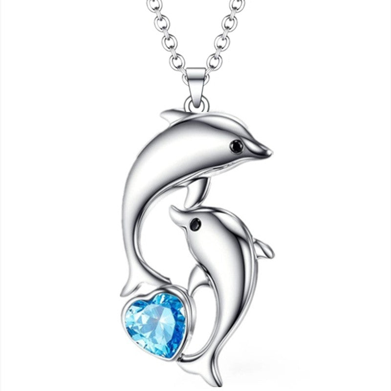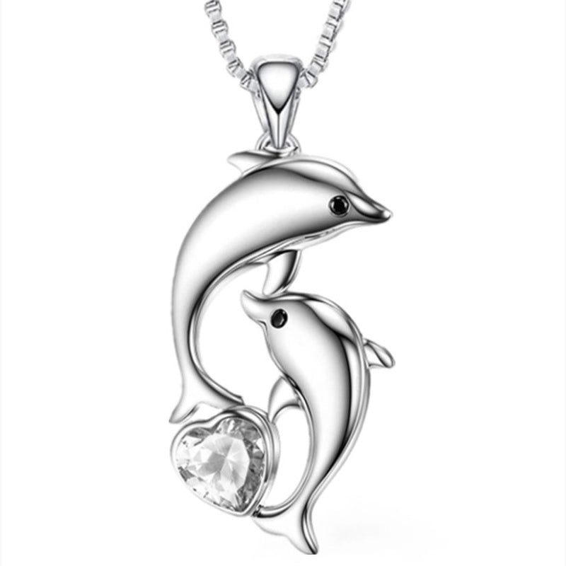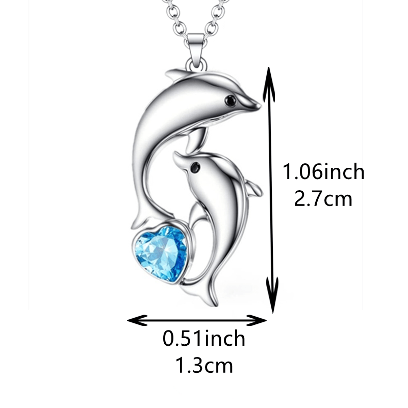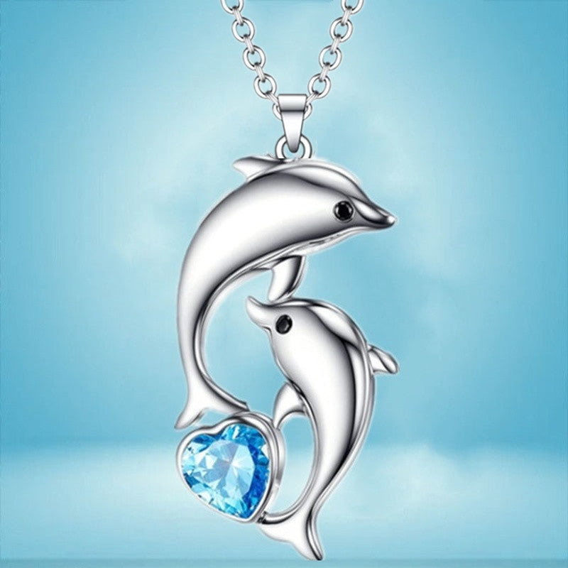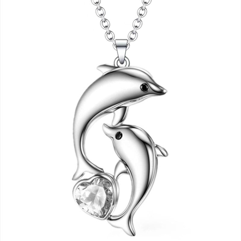 This elegant necklace features a couple dolphin design with a heart-shaped zircon pendant. Perfect for engagement or as an accessory to show your love for these majestic animals.