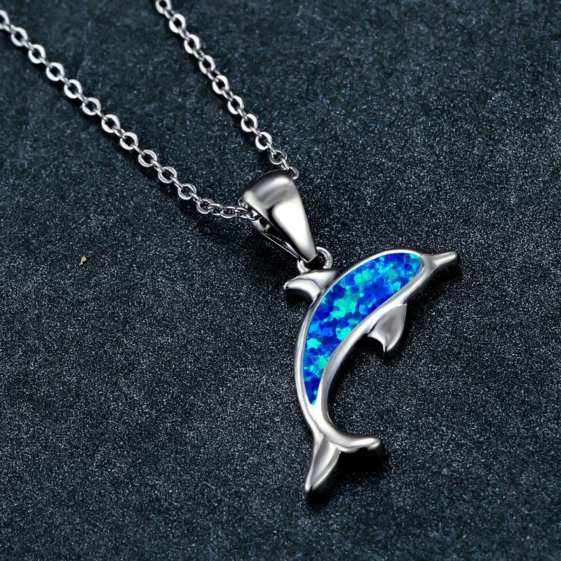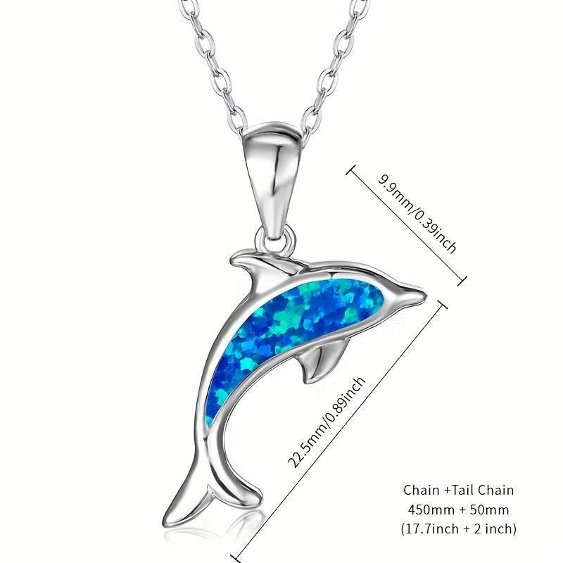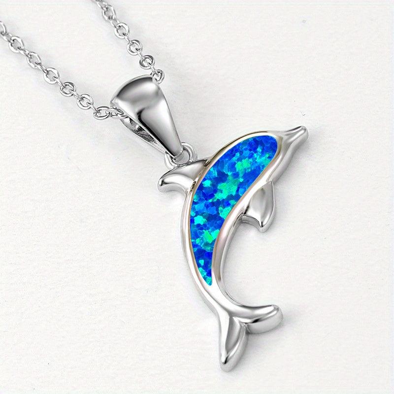 Add a touch of summer vacation style with this dolphin pendant necklace featuring opal inlay and a copper base. Perfect for daily wear or holiday occasions.