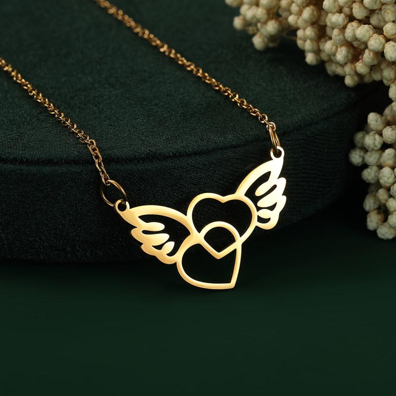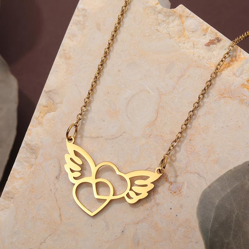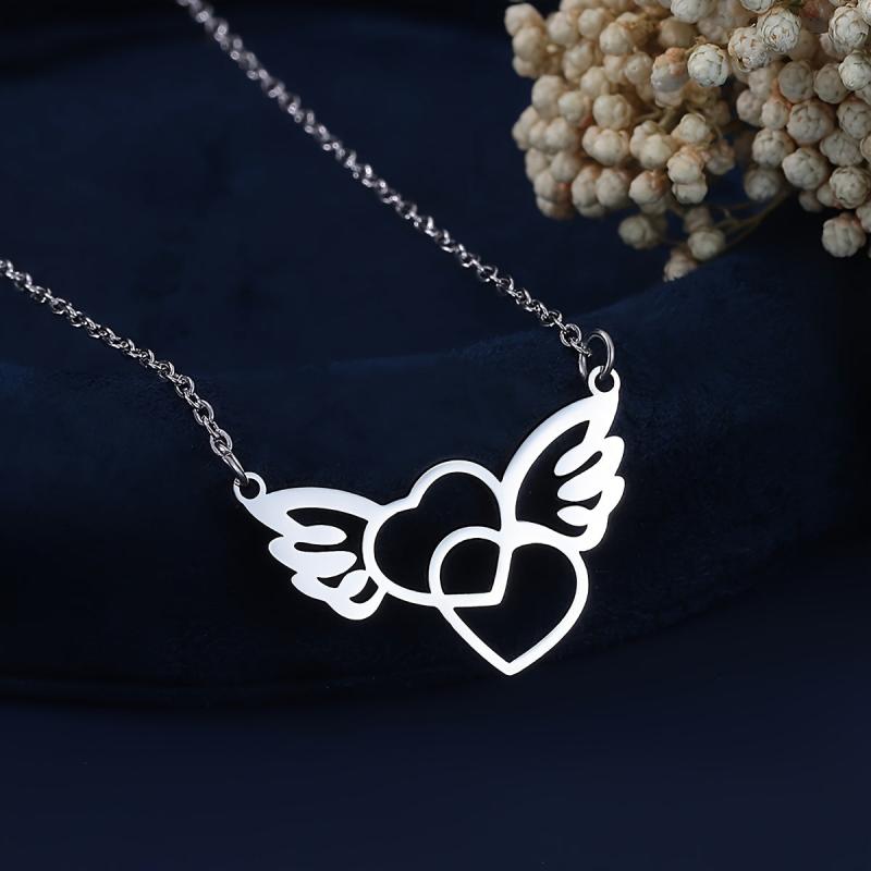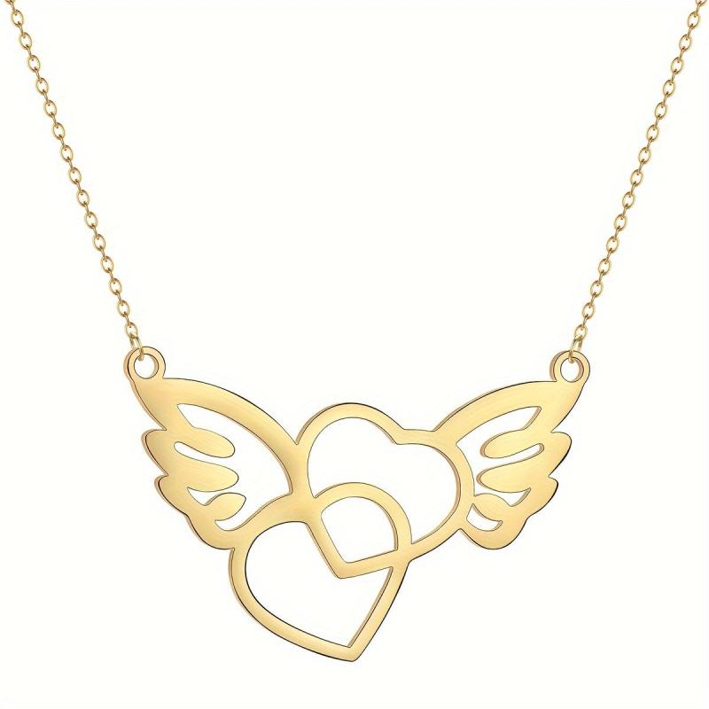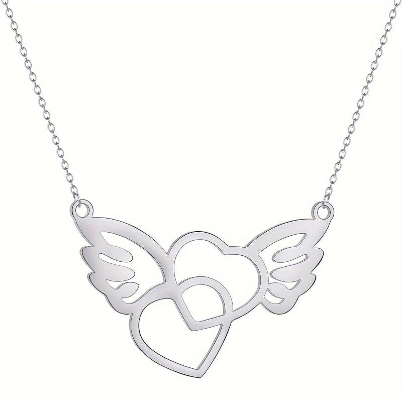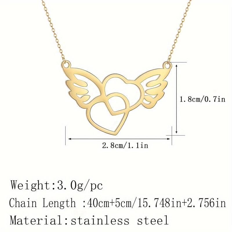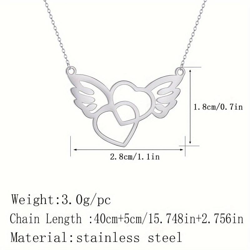 This stainless steel necklace features a double heart angel wings charm pendant, making it a perfect accessory for women and men. Ideal for parties, gifts, Valentine's Day, Christmas, Easter, and Thanksgiving. Embrace the boho jewelry trend with this stylish piece.