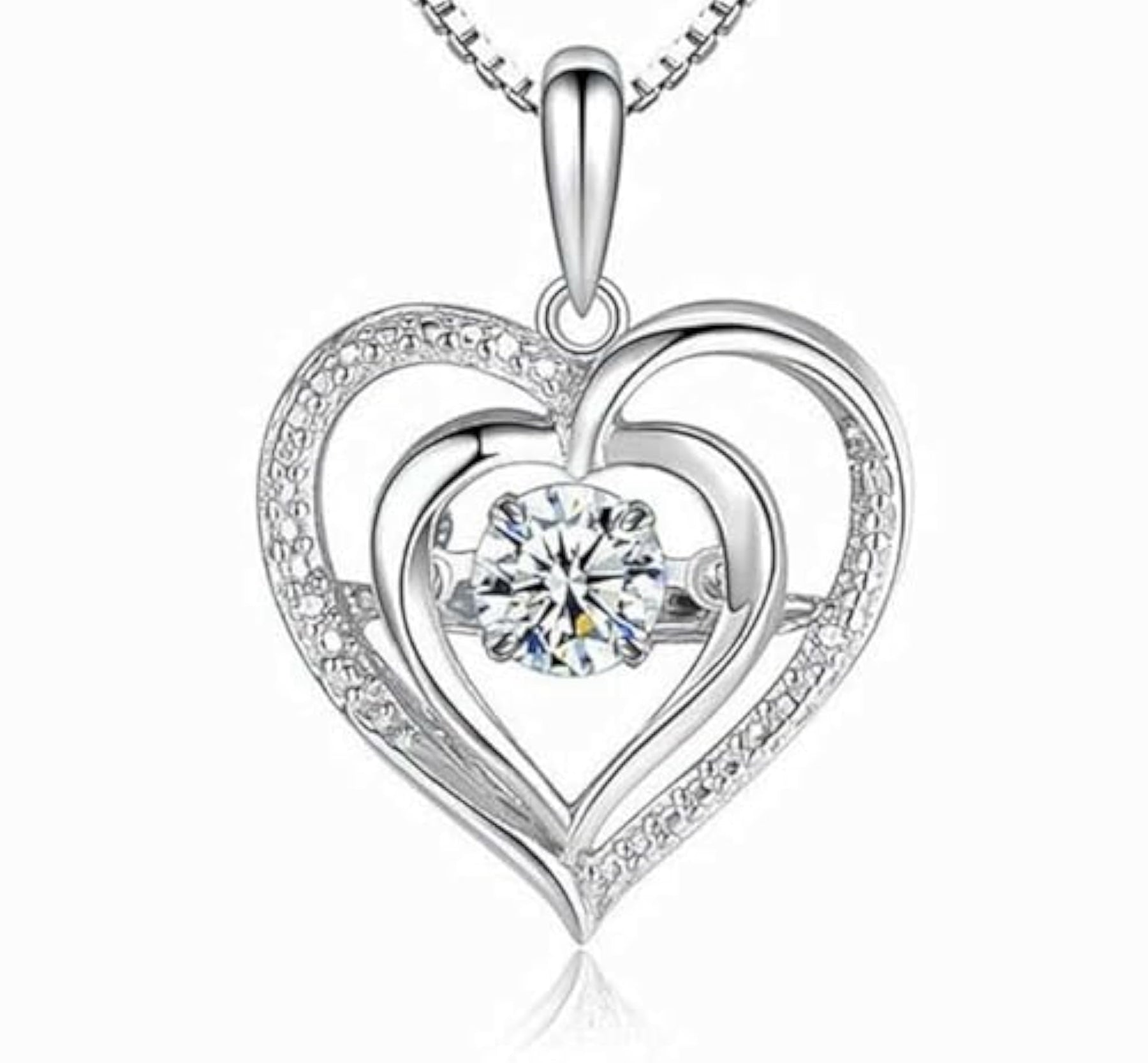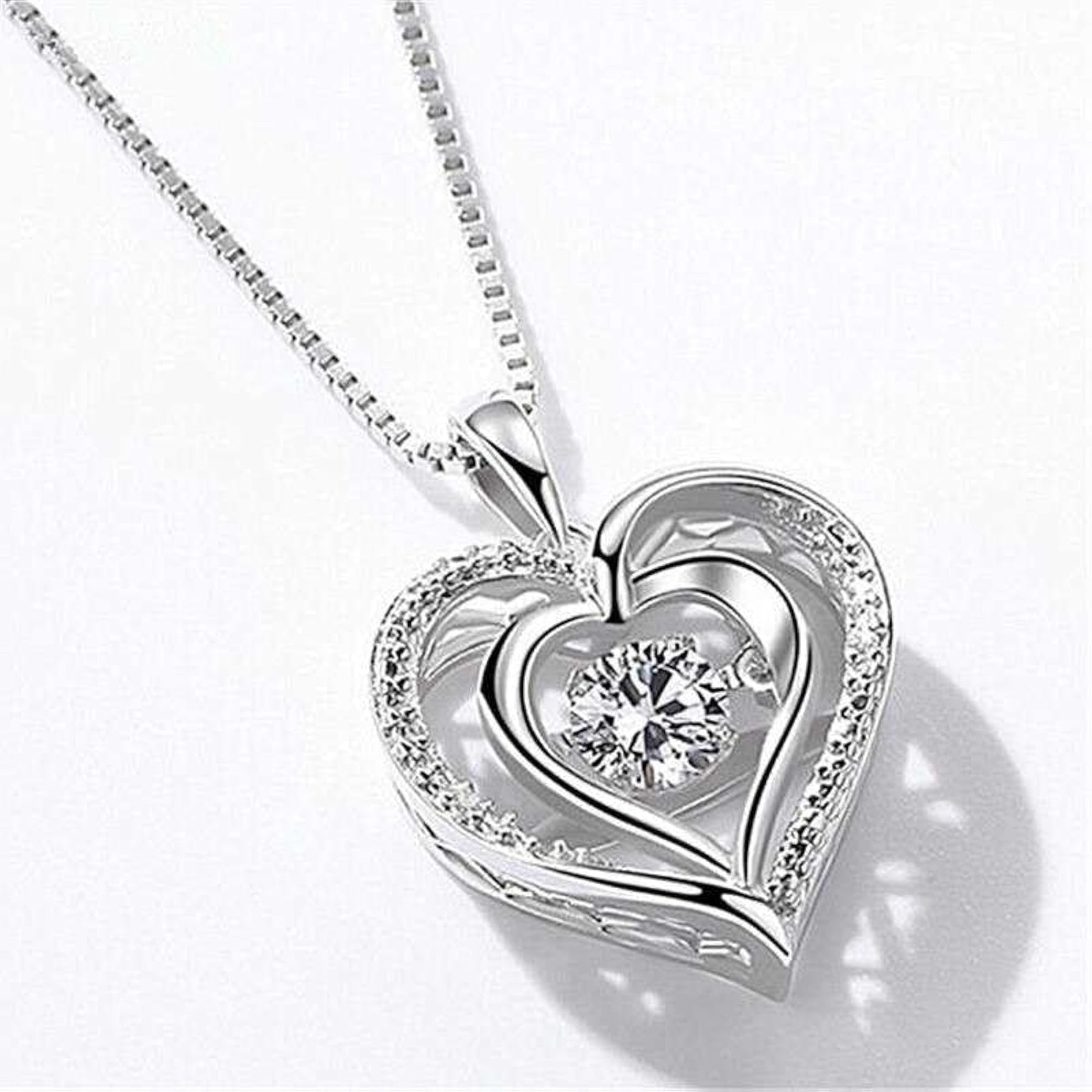 This stunning double heart necklace pendant is adorned with sparkling cubic zirconia stones. It comes with a delicate chain, making it a perfect gift for your girlfriend or loved one.