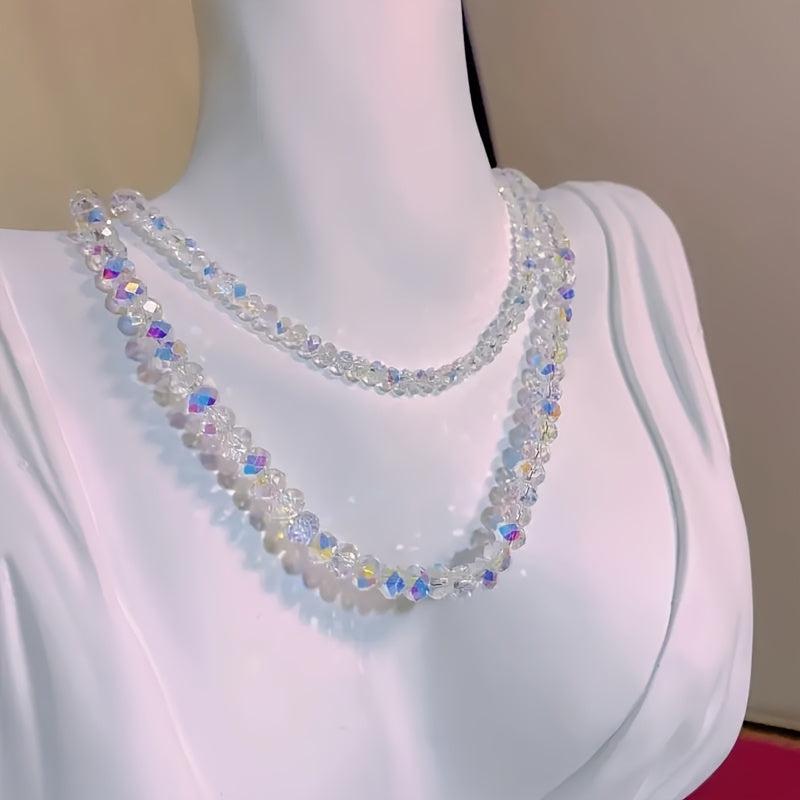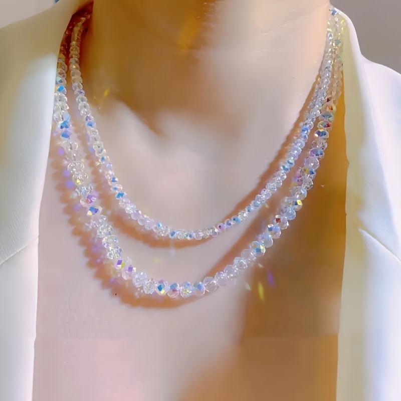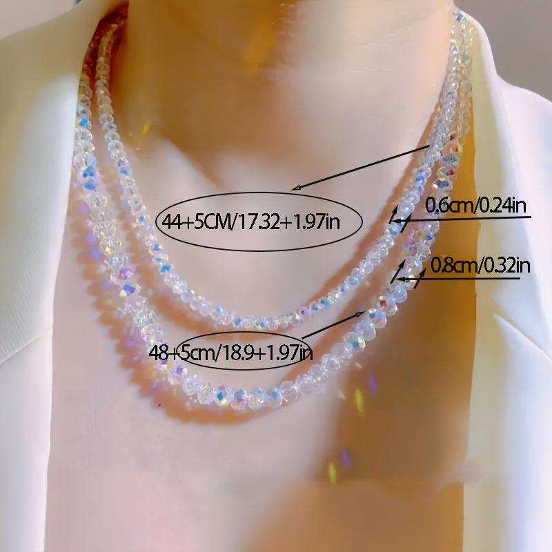 Elegant and versatile double layer necklace with sparkling artificial crystals that is perfect for weddings, parties, and year-round accessorizing.