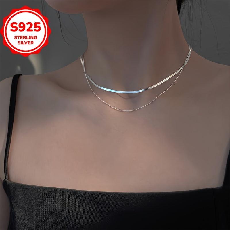 Stay stylish all year round with this hypoallergenic double layer necklace. The versatile collarbone chain features a blade chain and snake bone design, perfect for any season.