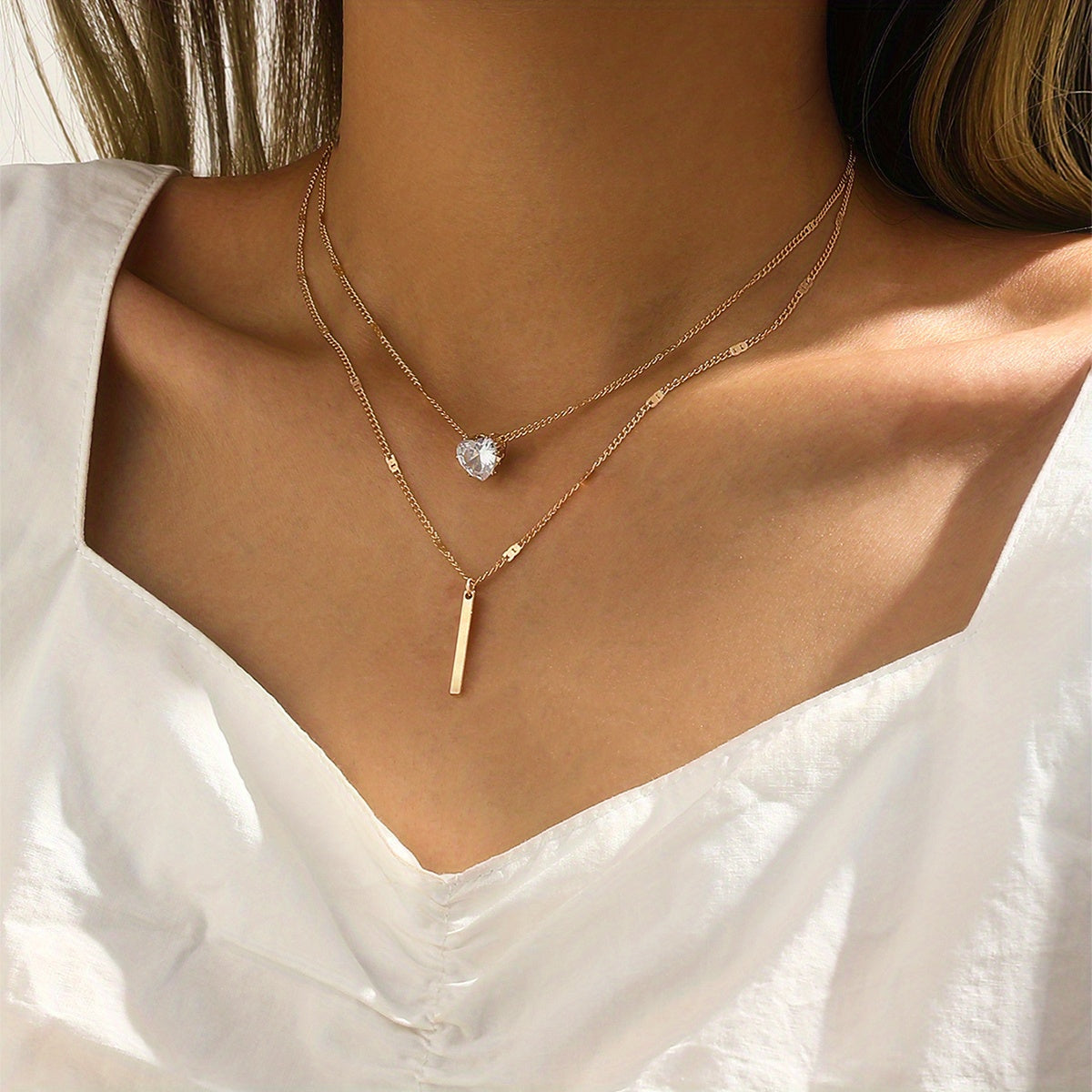This set includes two stunning necklaces with small rhinestone embellishments and long tassel pendants.