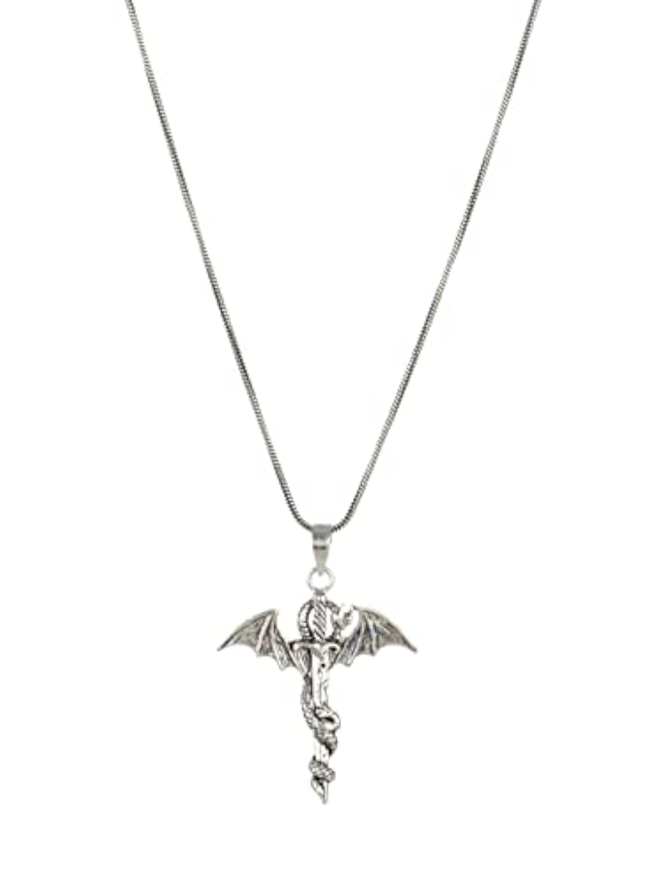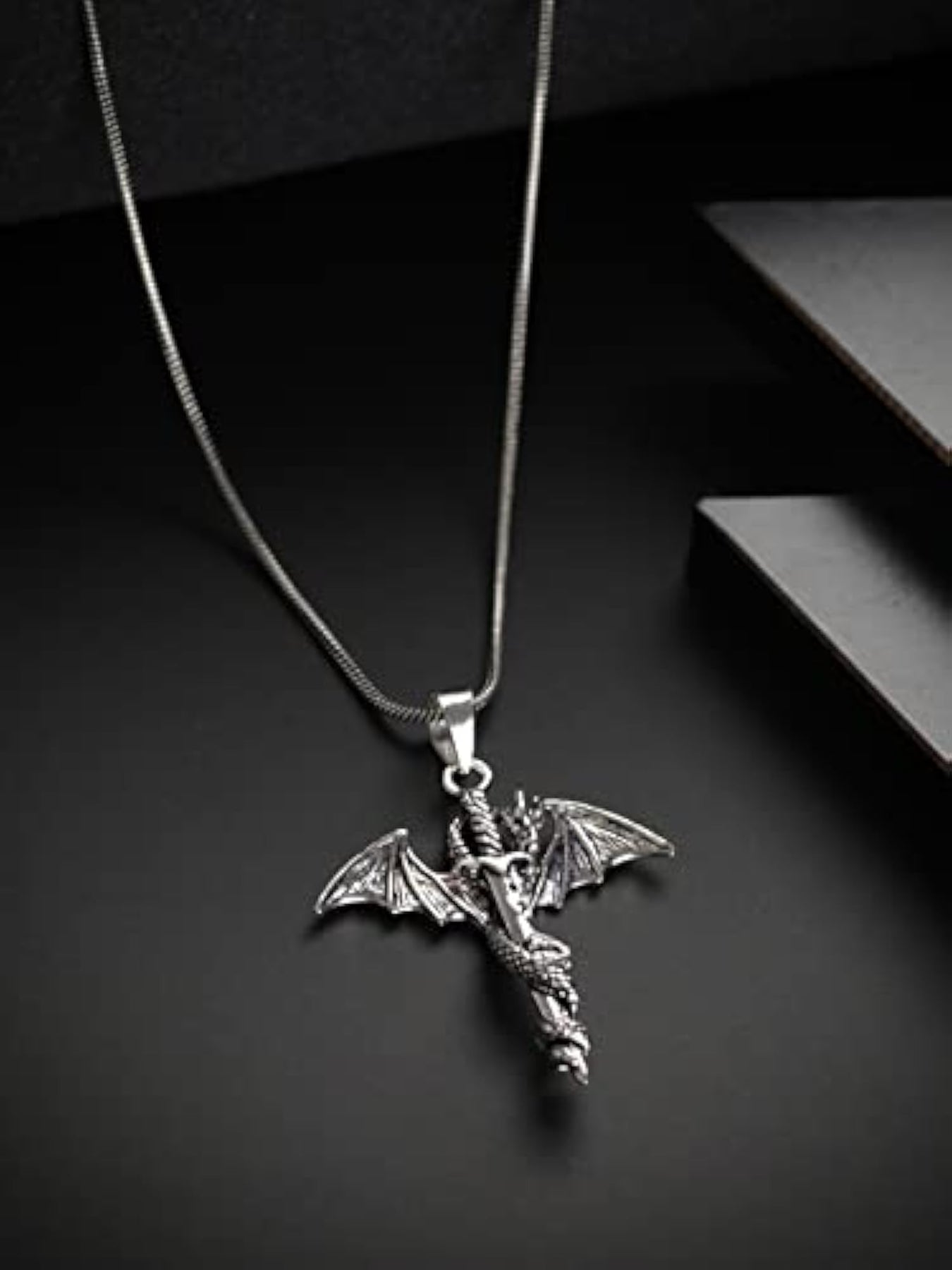 Embrace the mythical allure with this dragon sword plated necklace, a perfect piece of fantasy jewelry for men.