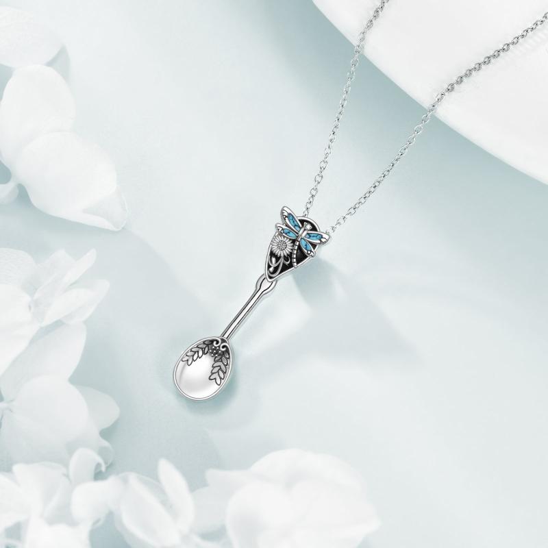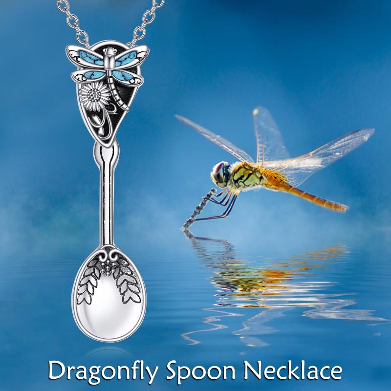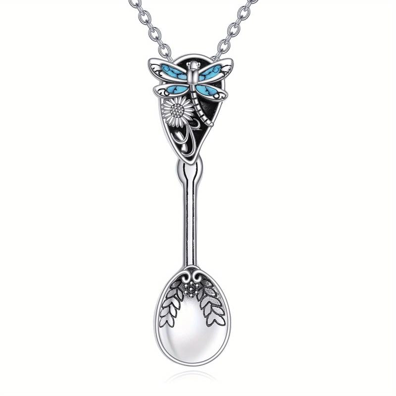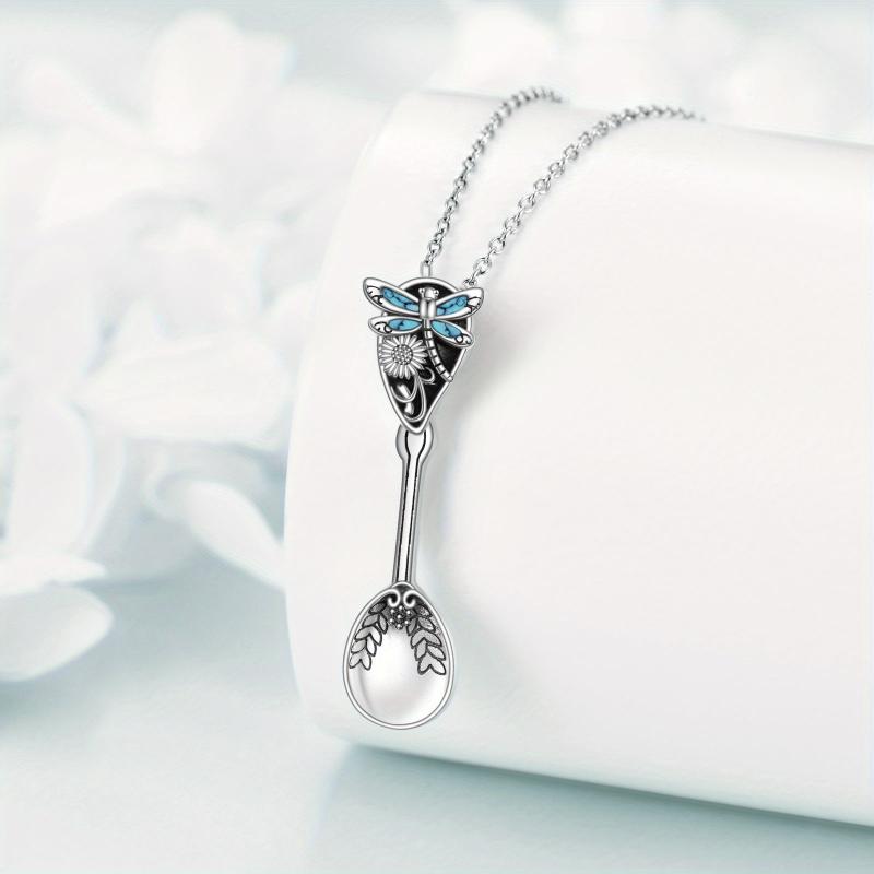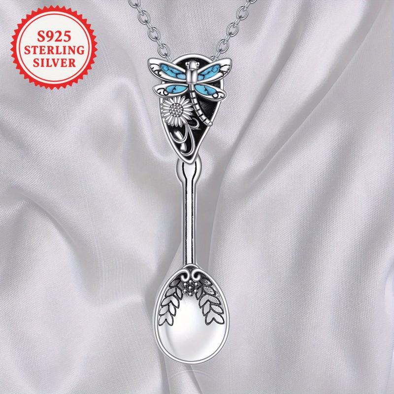 This elegant necklace features a dragonfly and flower design on a mini teaspoon pendant. Made of high-quality sterling silver, it is suitable for both women and men.