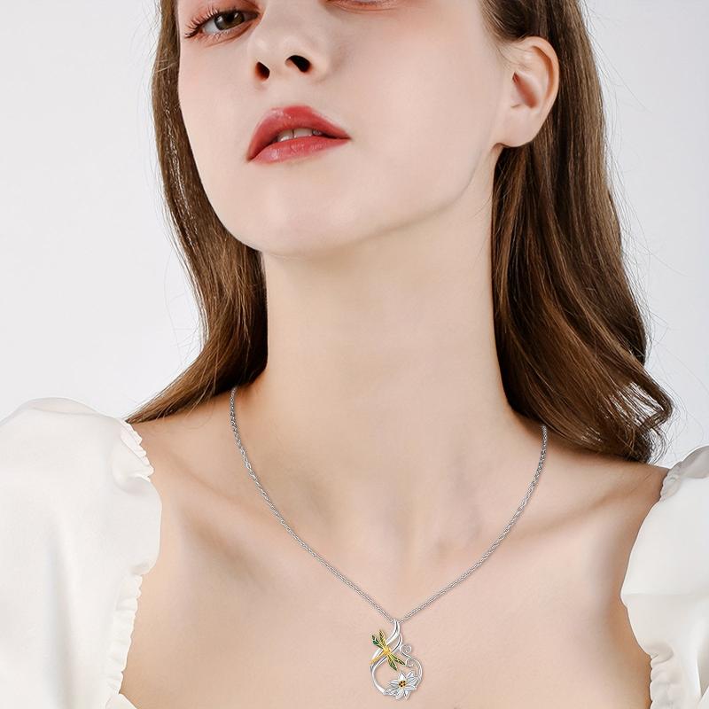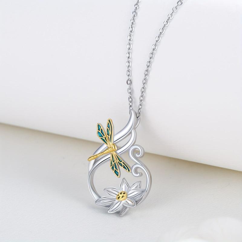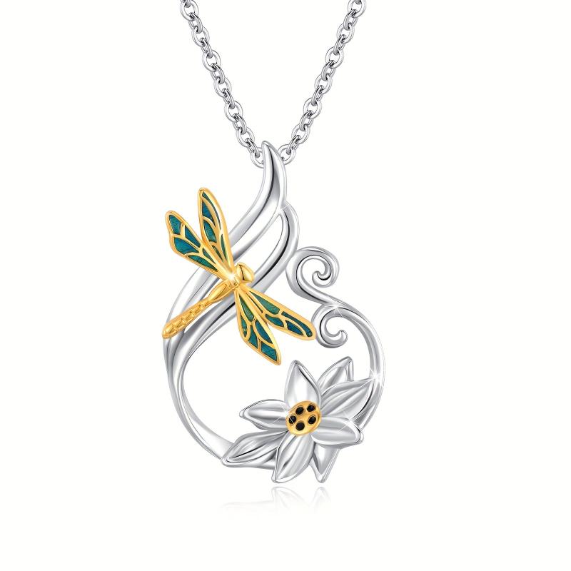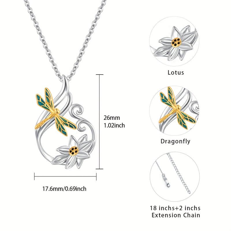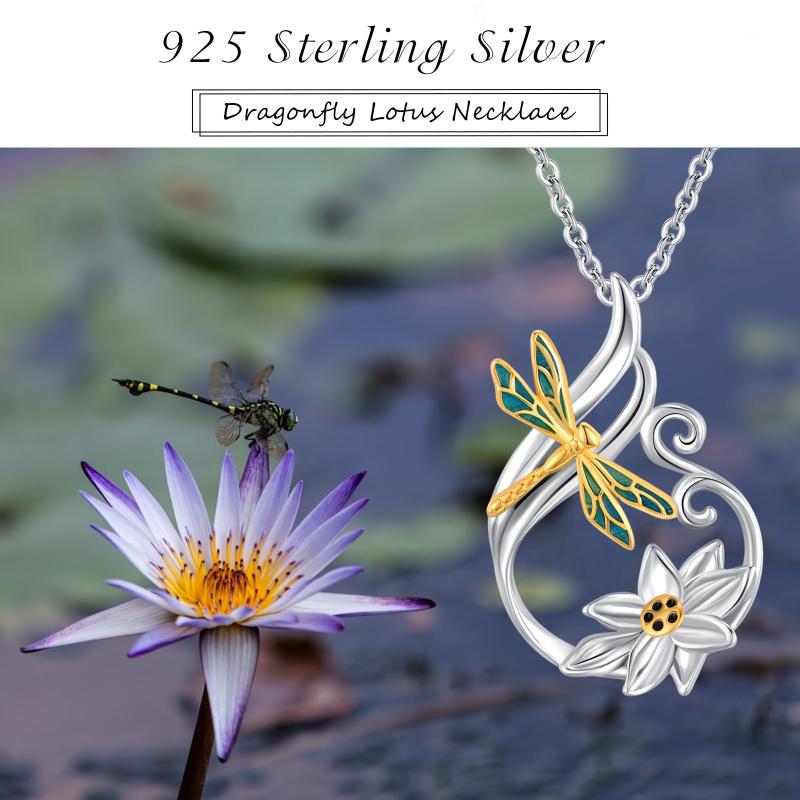 Elegant dragonfly and lotus design pendant necklace crafted in 925 sterling silver. Perfect yoga jewelry for women's gift.