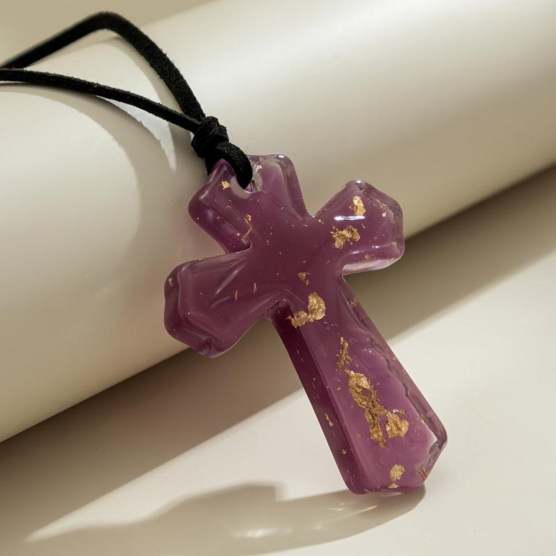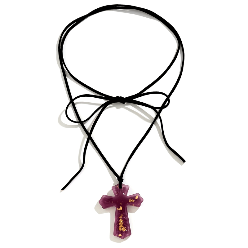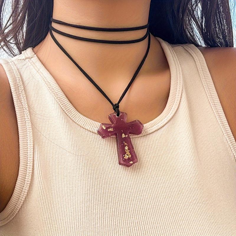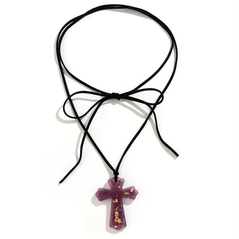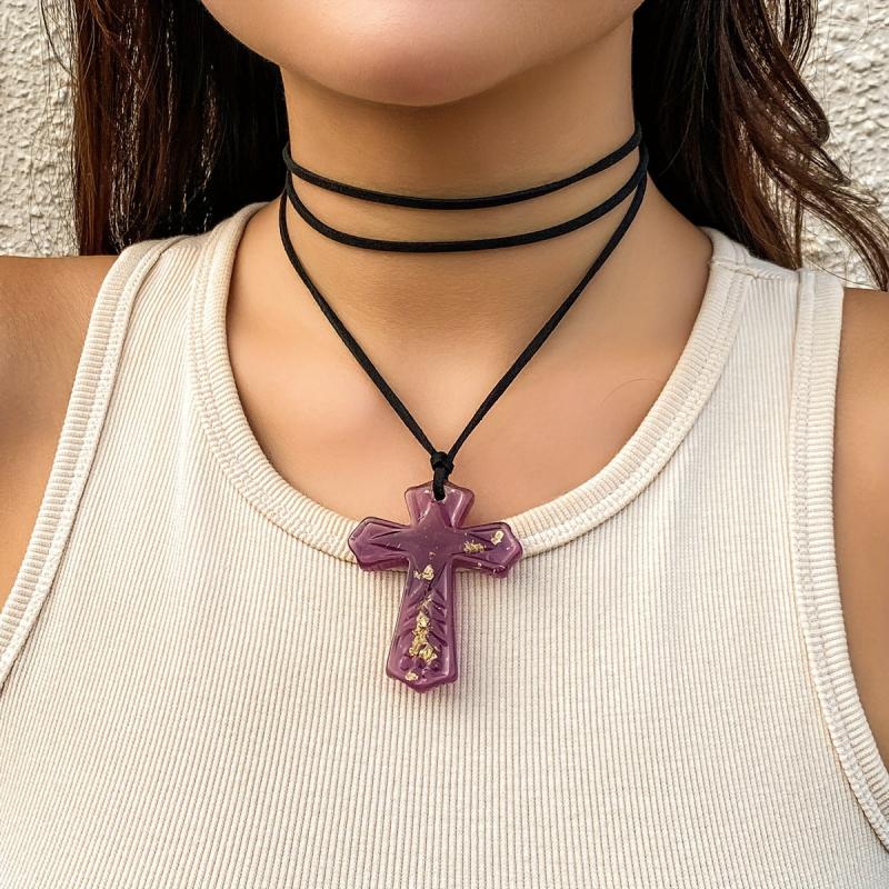 Add a touch of edgy sophistication to your look with this adjustable choker necklace. The striking purple cross pendant and golden accents make it perfect for casual or formal outfits.