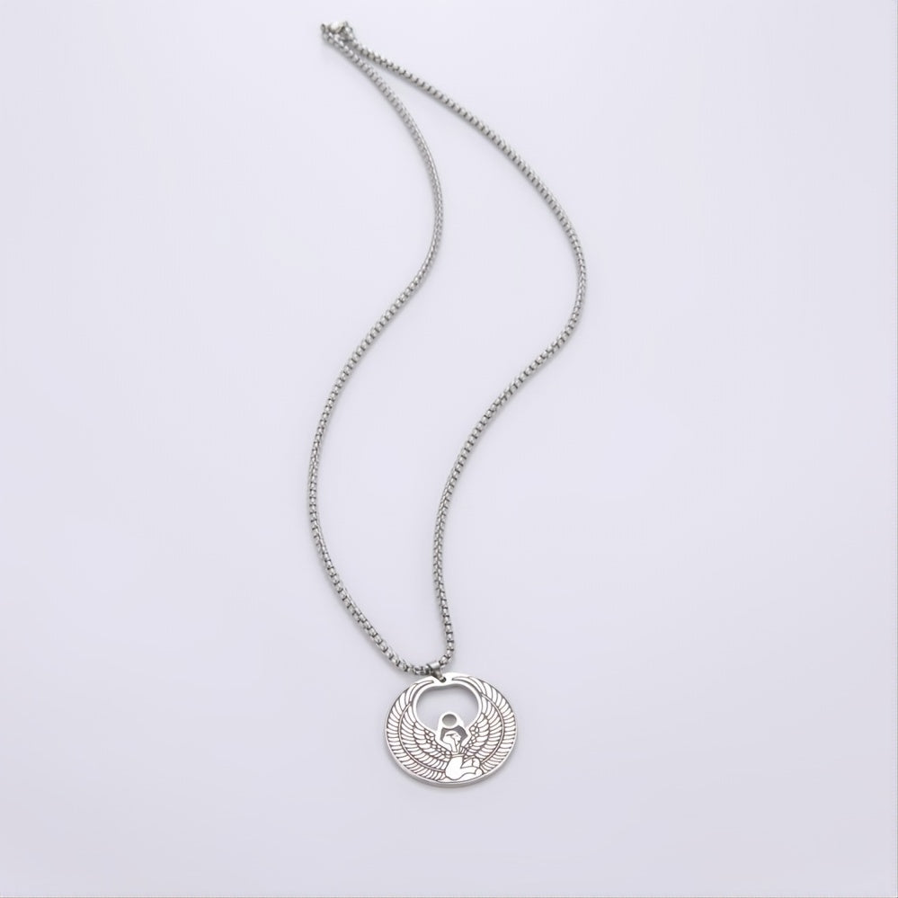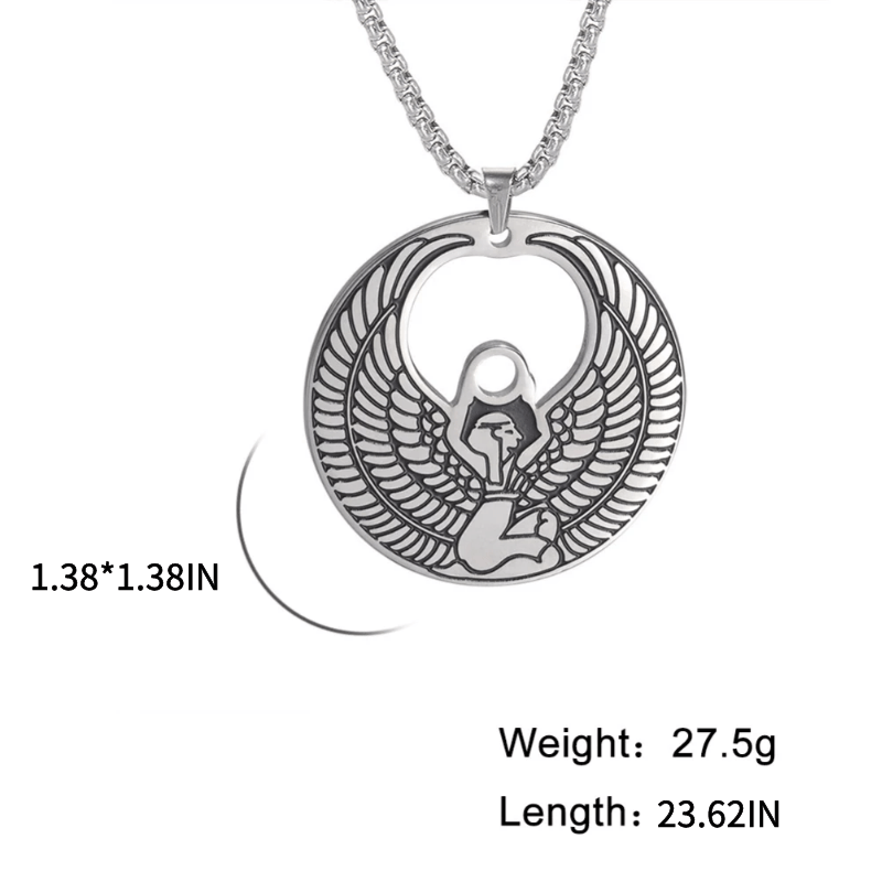 Embrace the timeless beauty of ancient Egypt with this stunning Isis necklace. Crafted from high-quality stainless steel, this necklace features intricate Egyptian designs.