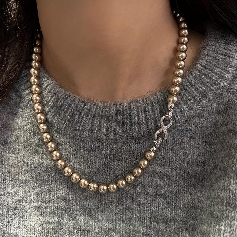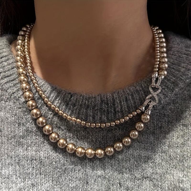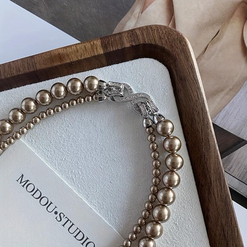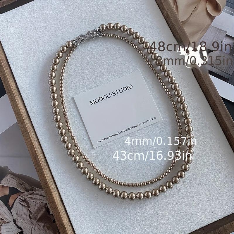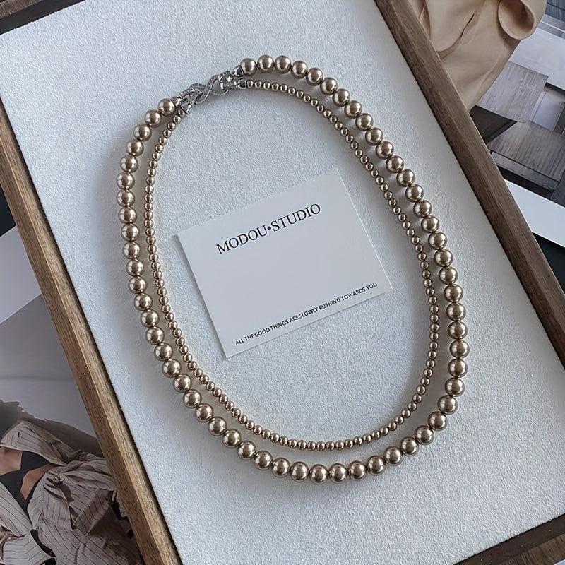 Enhance your everyday and special occasion outfits with this classic double layered brown bead pearl necklace. Perfect for gifting to loved ones.