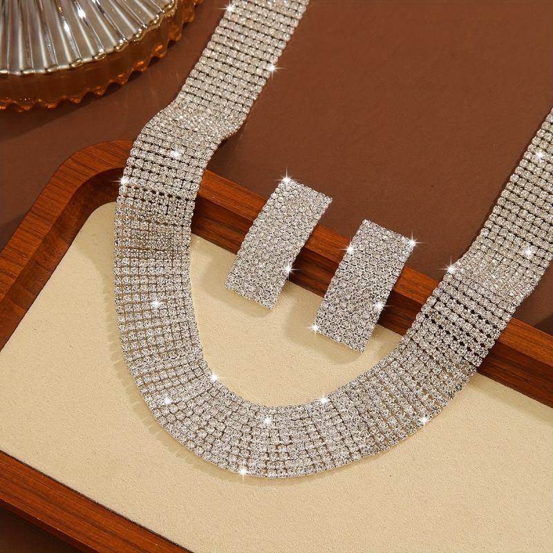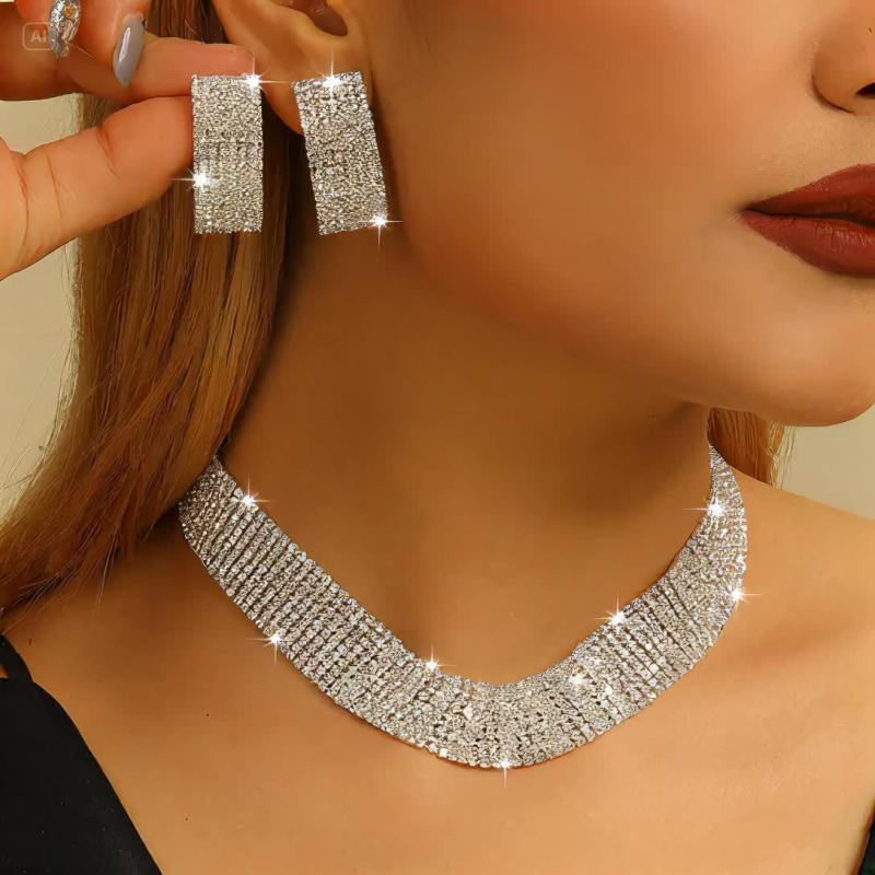 Complete your evening dress or bridal outfit with this stunning two-piece jewelry set. Perfect for weddings, parties, or photography sessions.
