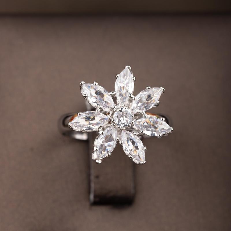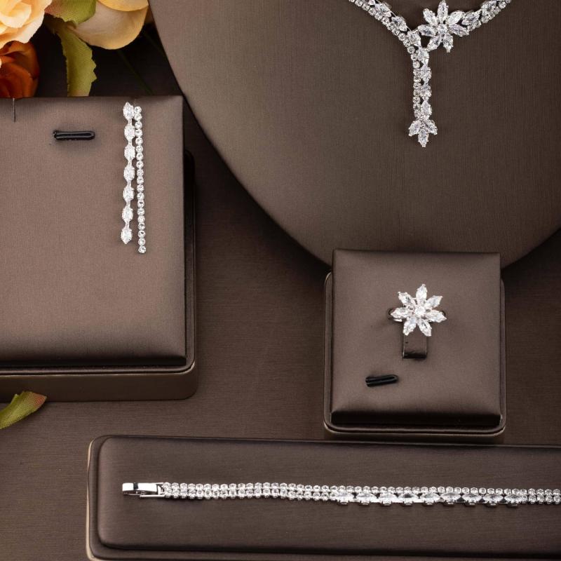 Enhance your style with this stunning cubic synthetic zirconia flower necklace, earrings, and ring set. Perfect for weddings, banquets, and parties.