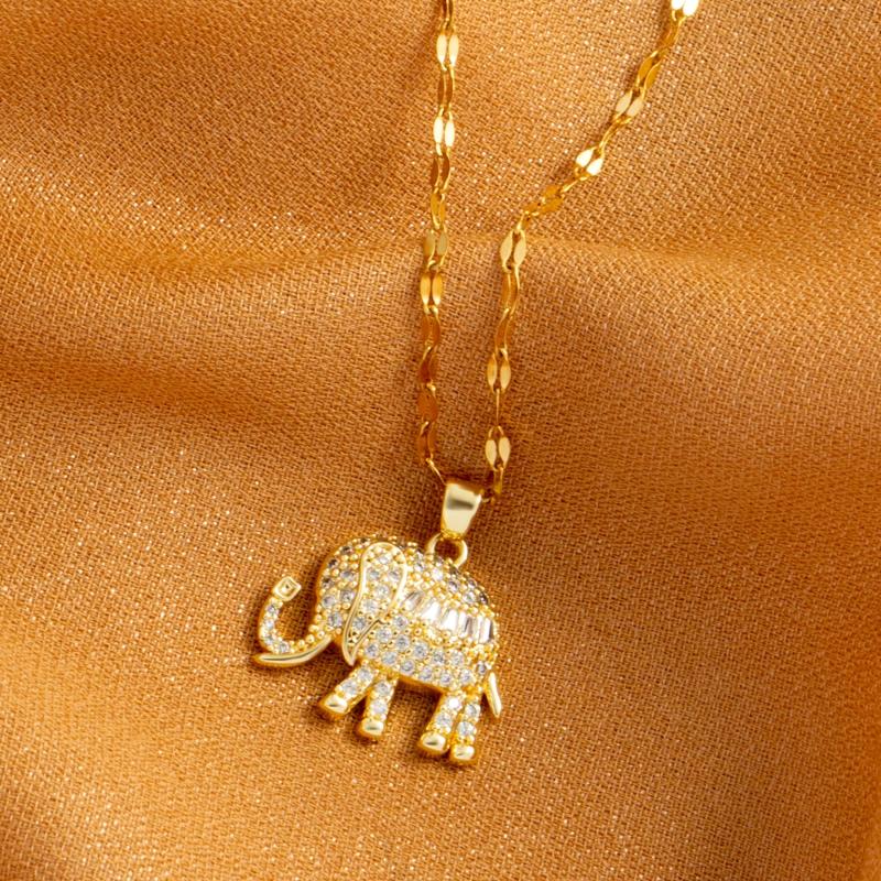 Add a touch of elegance with this hypoallergenic elephant pendant necklace. It features a stunning design with synthetic zirconia stones and is made of durable stainless steel.