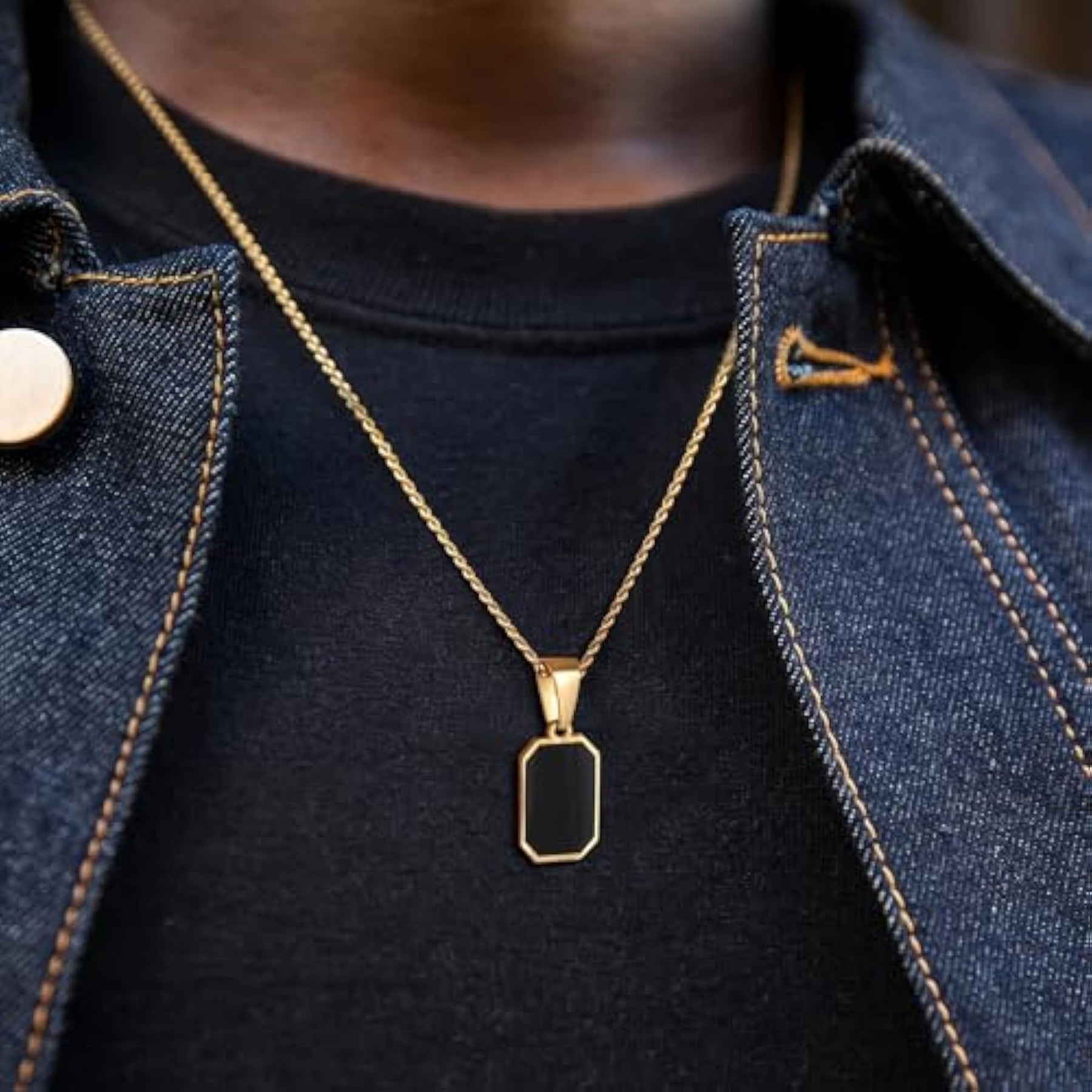Make a bold statement with this stunning emerald cut onyx pendant necklace. The elegant design is perfect for women who love a touch of glamour.