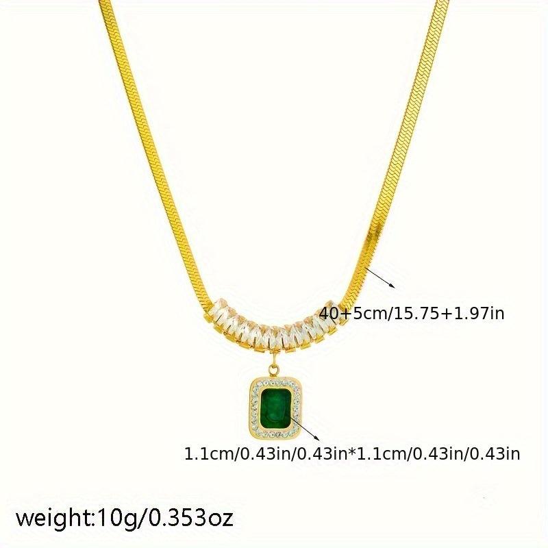 Gorgeous pendant necklace with emerald green square zirconia, perfect for parties and events.