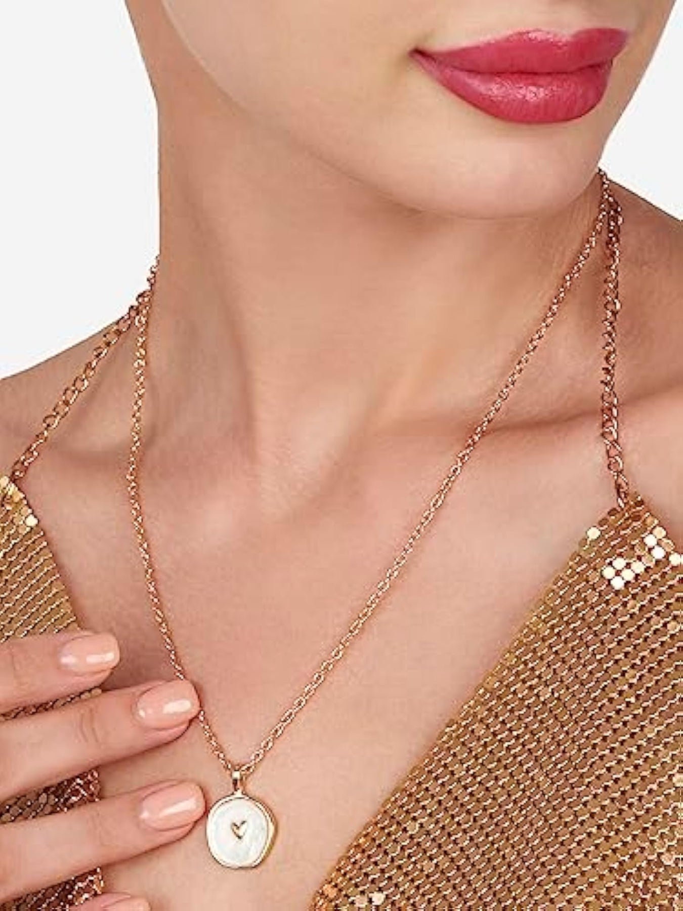 Add a touch of contemporary elegance to your look with this enamel tiny heart pendant and chain designed for women.