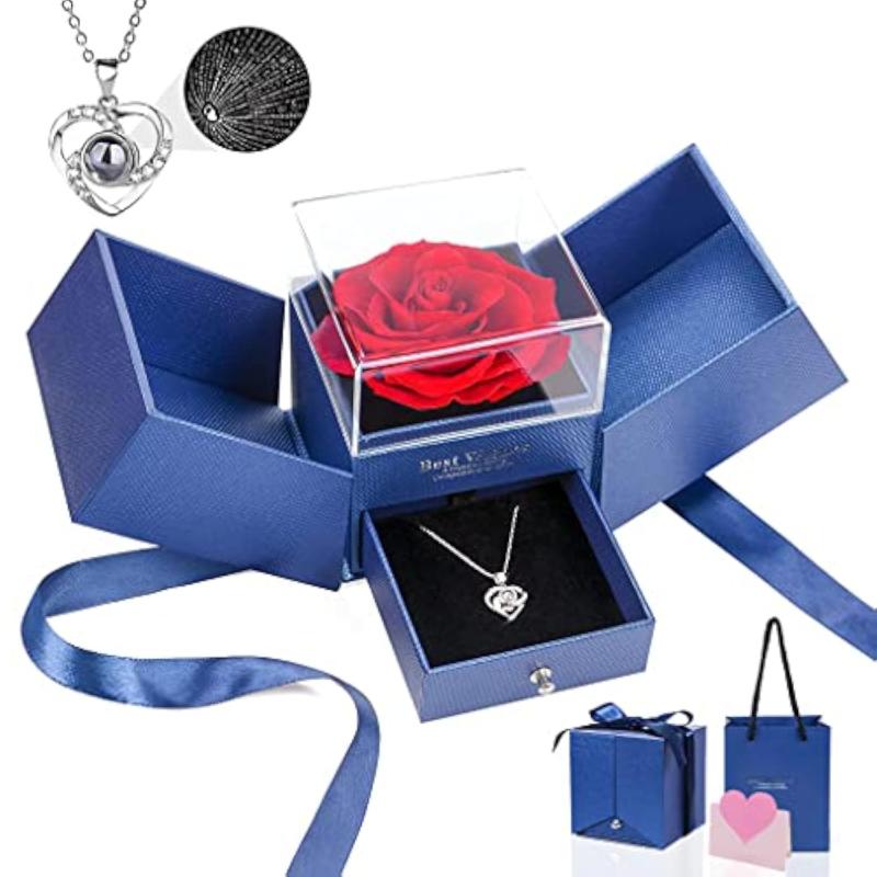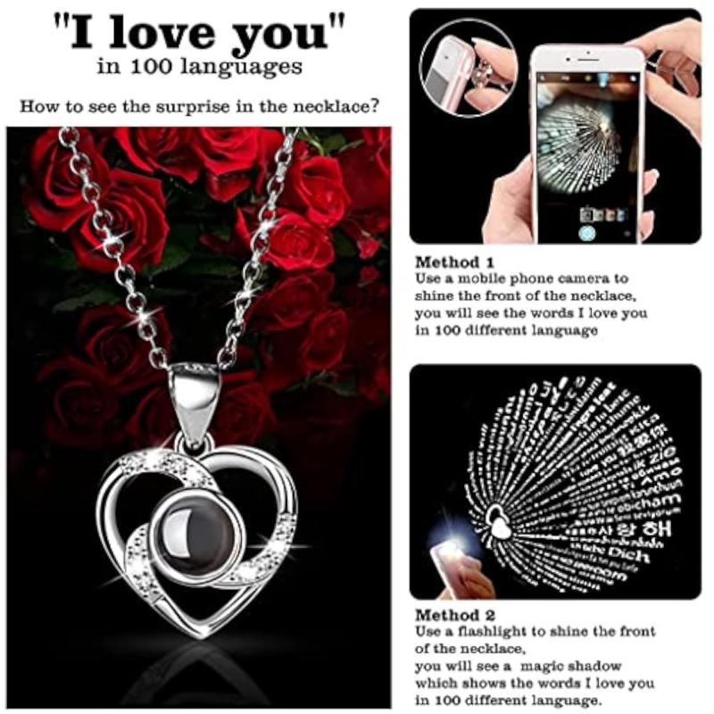 Beautiful rose necklace with 'I Love U' projection, perfect for ladies on birthdays, Christmas, or Valentine's Day.