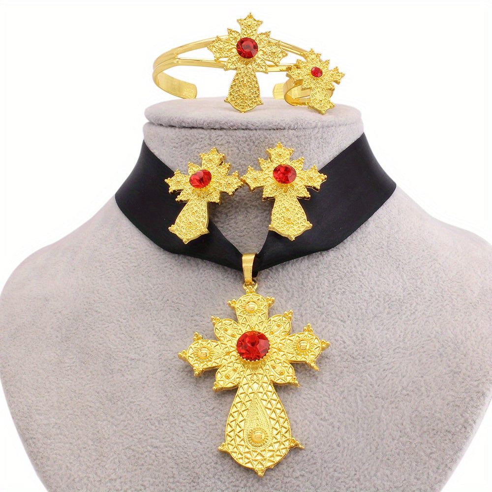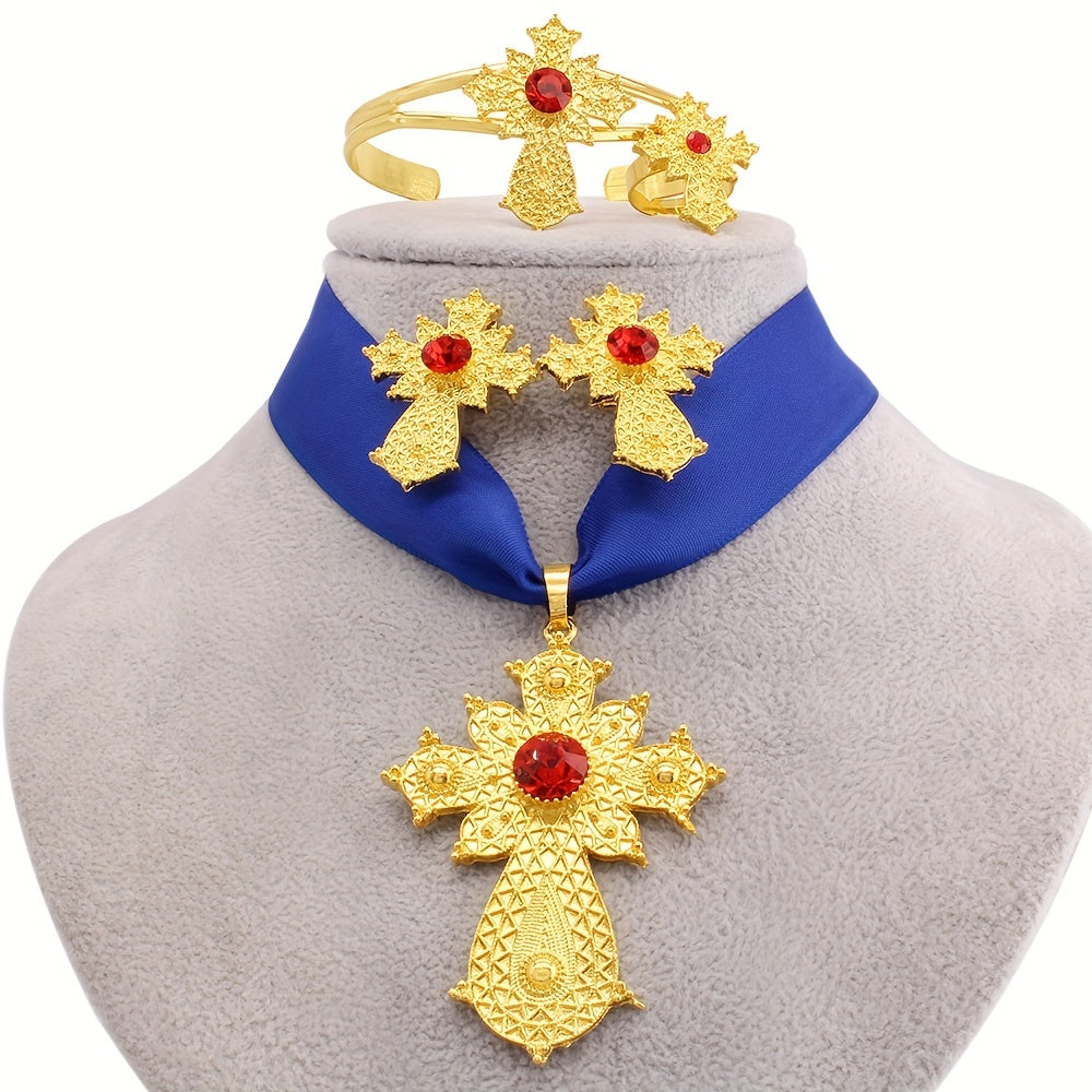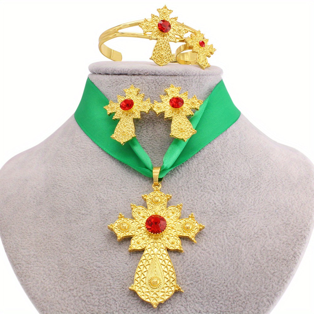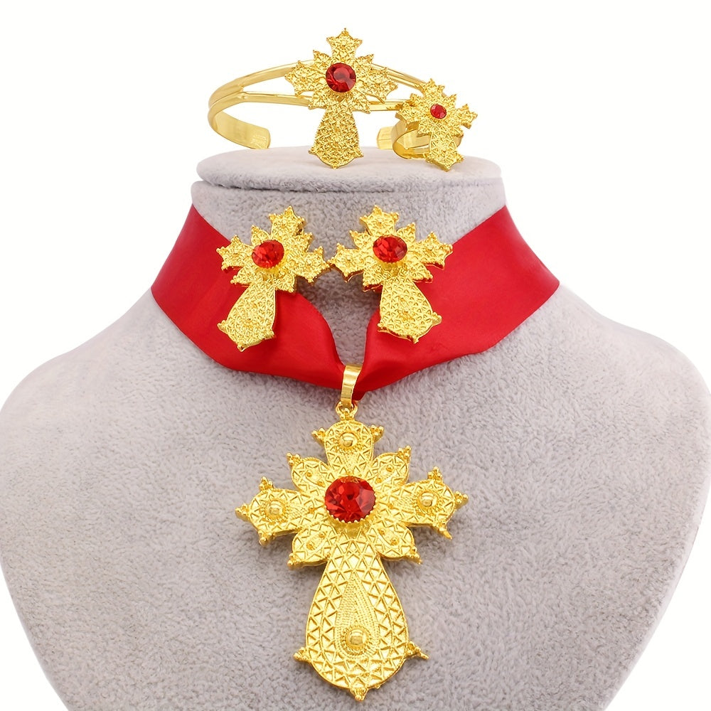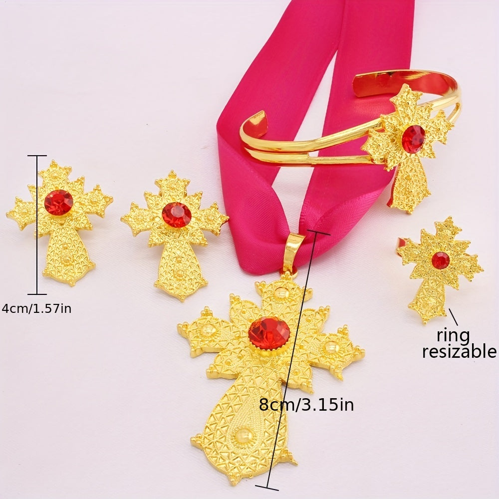 Complete your bridal look with this stunning jewelry set inspired by Africa. The set includes a necklace, earrings, ring, and bracelet.