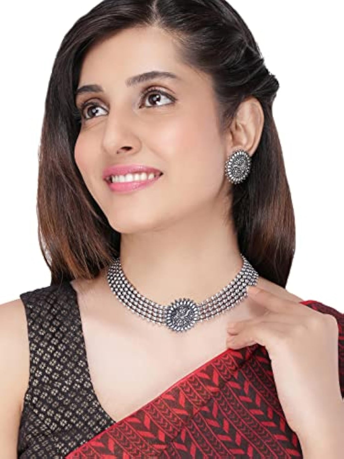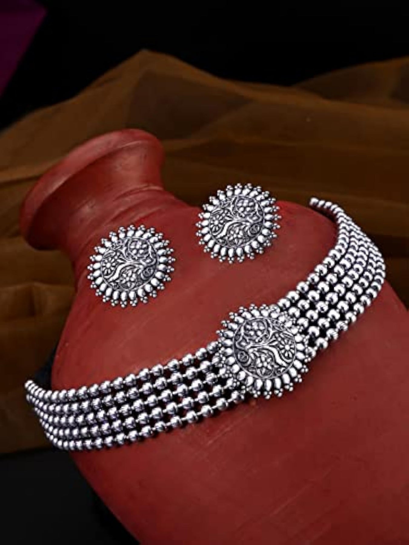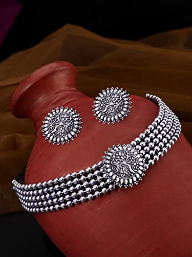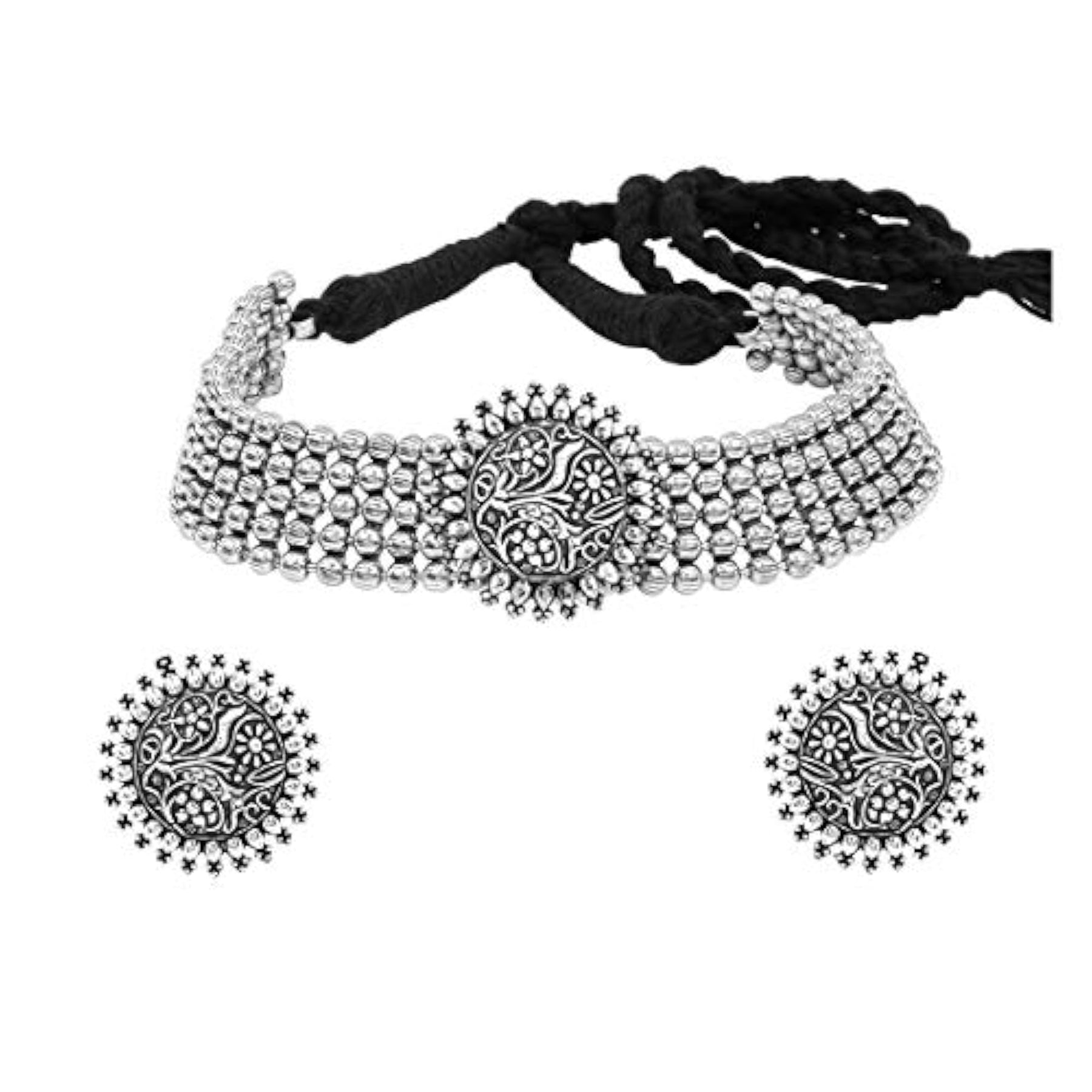 This traditional choker necklace set features oxidised threaded jewelry beads, making it a perfect accessory for women and girls.