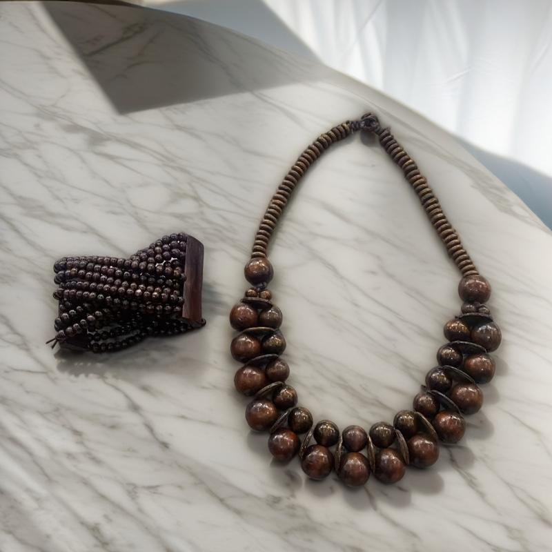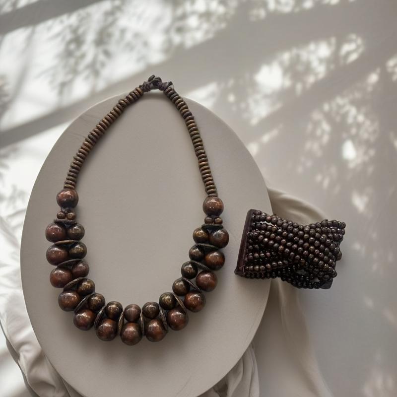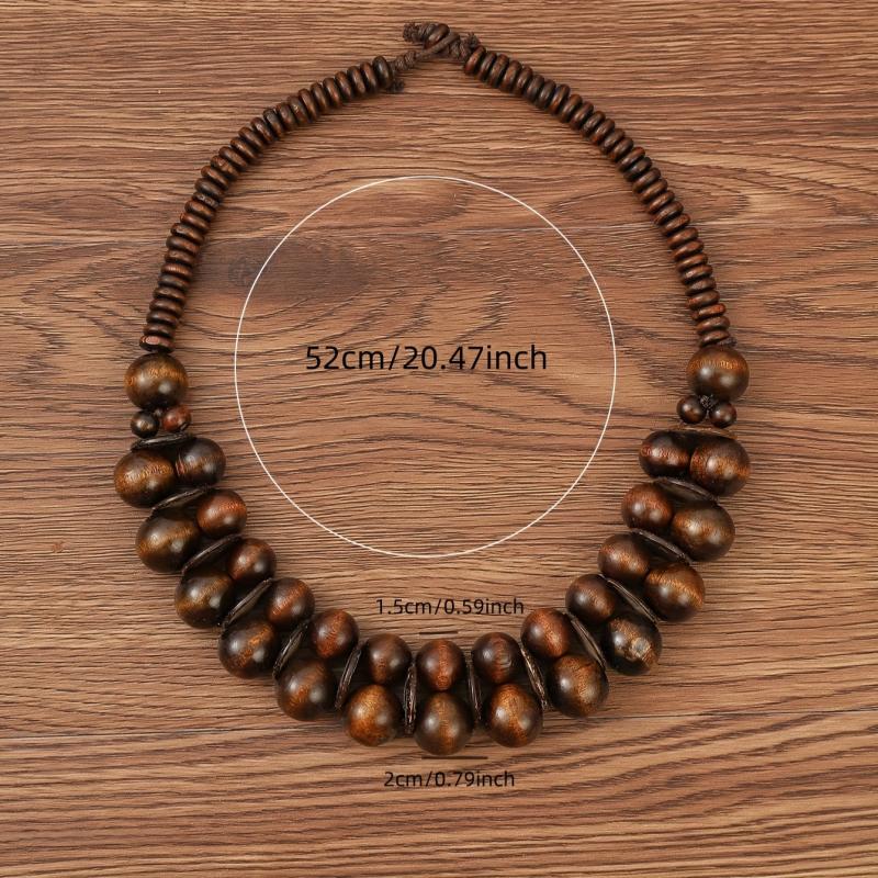 This fashionable set features retro brown wooden beads in an ethnic style design. Perfect for European & American fashion trends.