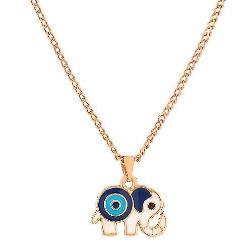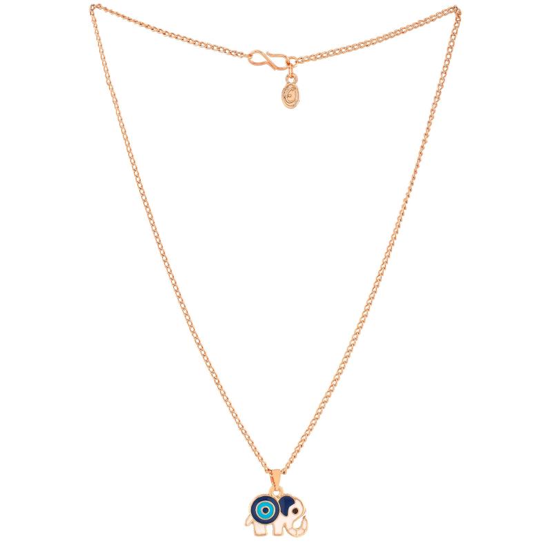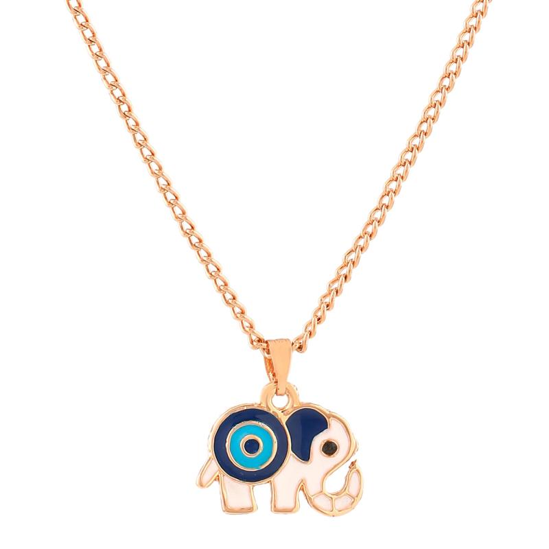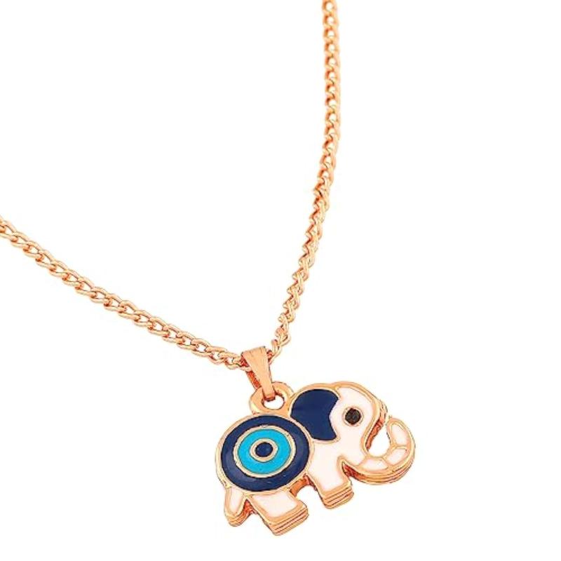 This necklace features a gorgeous evil eye elephant charm adorned with vibrant enamels for a stylish and protective look.