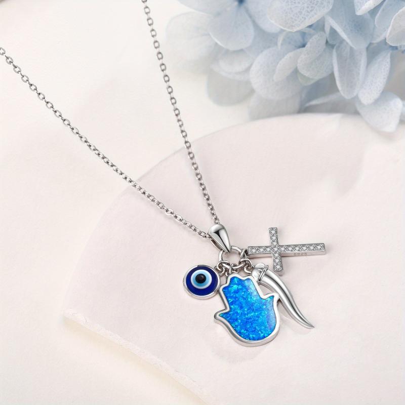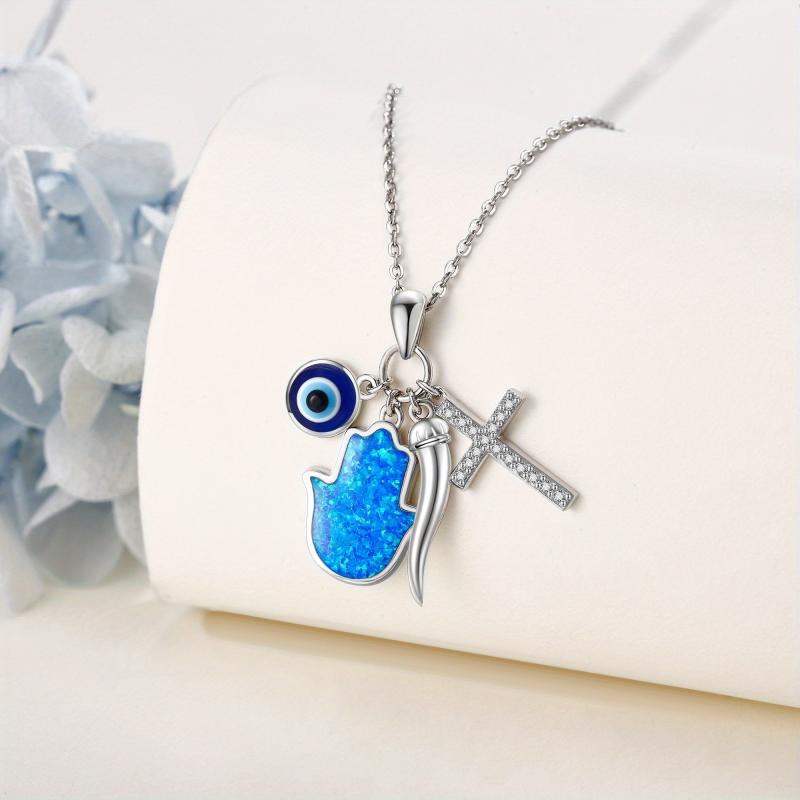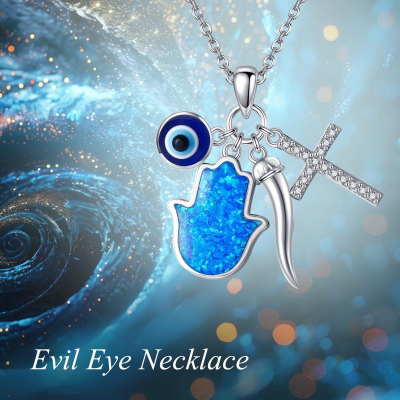 This evil eye necklace features a sterling silver Italian horn pendant charm. It is a stylish and protective jewellery piece for women.
