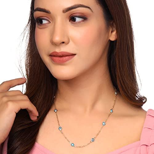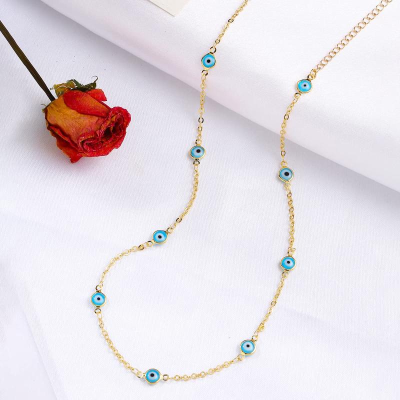 This stunning necklace features a tone chain with a beautiful evil eye stone pendant. The length is adjustable for a perfect fit.