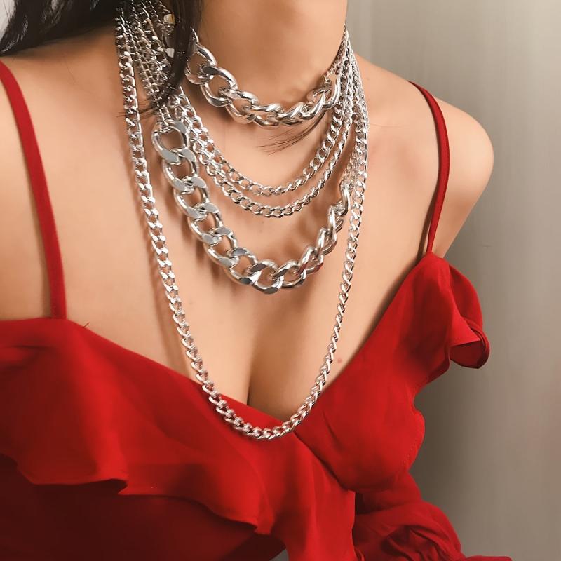 Make a bold statement with this punk style necklace featuring layered tassels on a golden chain.