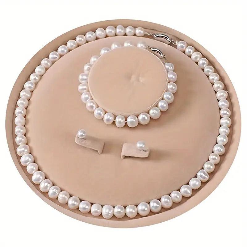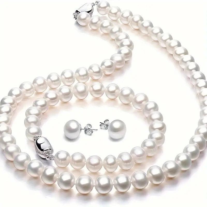 This elegant jewelry set includes a necklace, bracelet, and earrings made with freshwater cultured pearls. A perfect gift for Christmas!