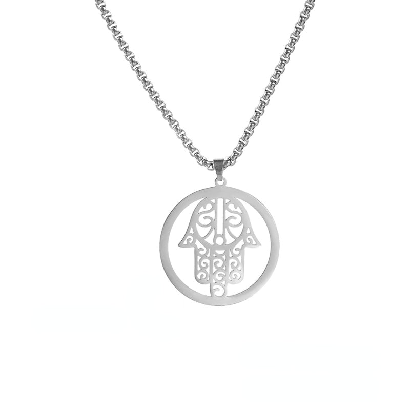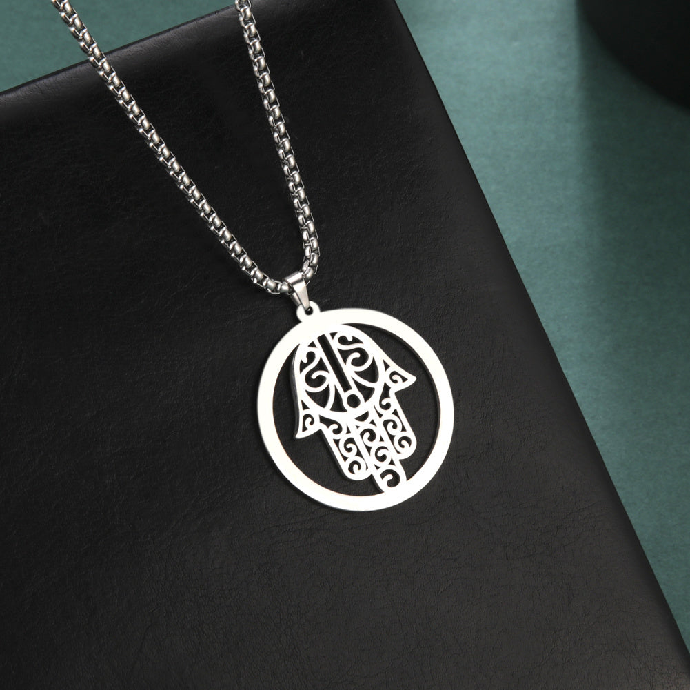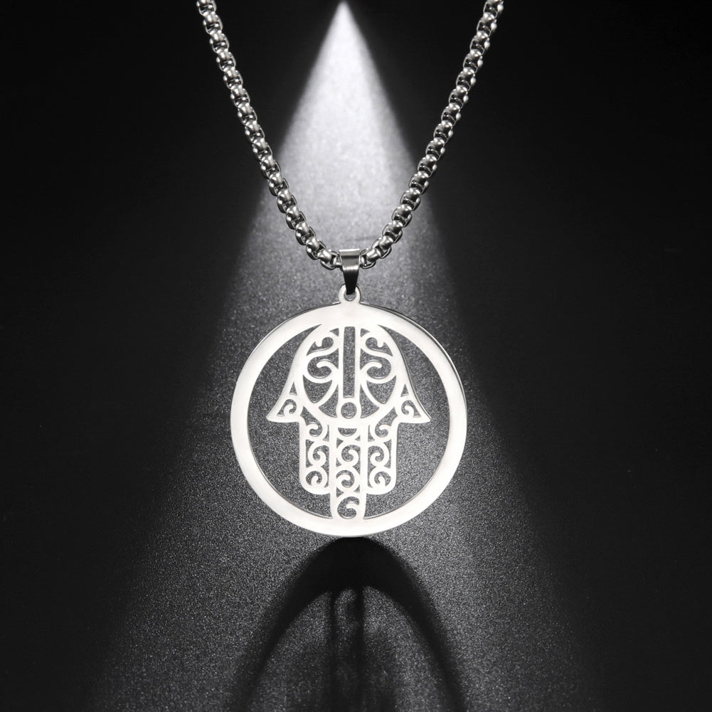 Stay protected with this vintage style Hamsa Hand pendant necklace. Crafted from stainless steel, it offers health benefits and wards off evil eyes.